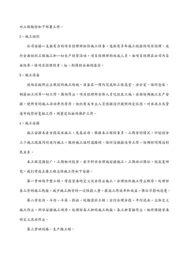 本站资深用户发布了最新的《(技术规范标准)农田水利高标准施工方案(技术标)》文档,以下内容为预览,详细内容可下载阅读。 声明:本站所有文章,如无特殊说明或标注,均为本站原创发布。任何个人或组织,在未征得本站同意时,禁止复制、盗用、采集、发布本站内容到任何网站、书籍等各类媒体平台。如若本站内容侵犯了原著者的合法权益,可联系我们进行处理。