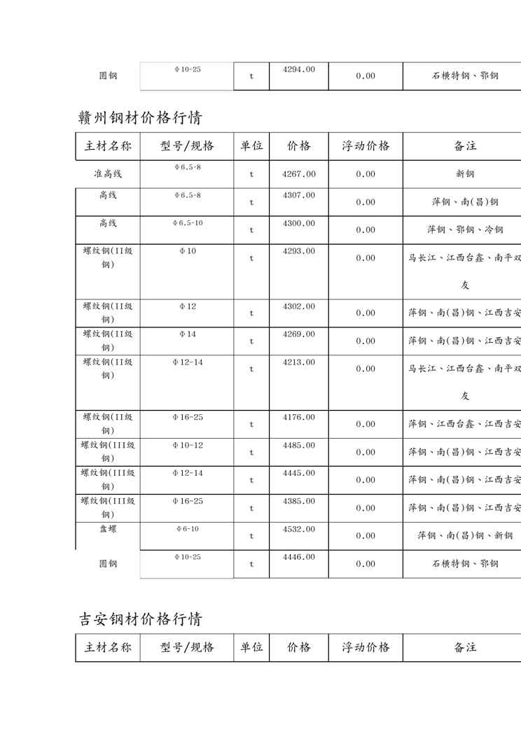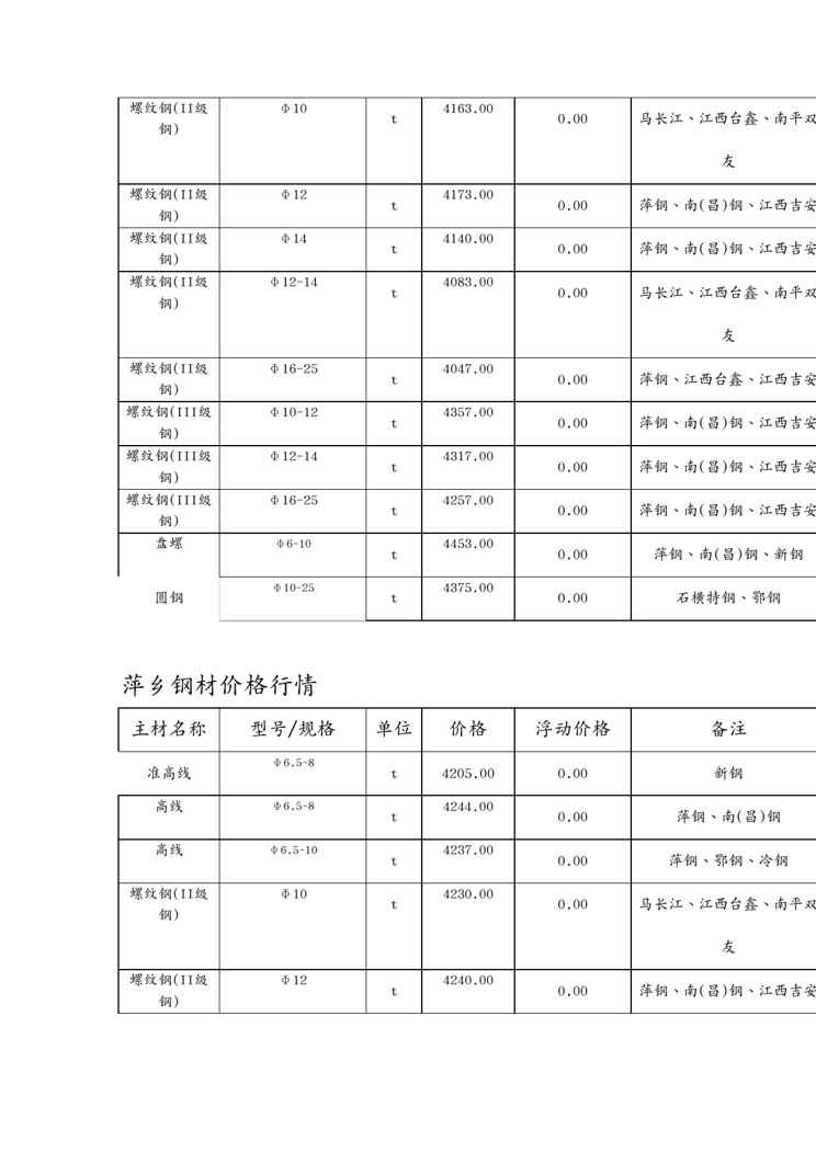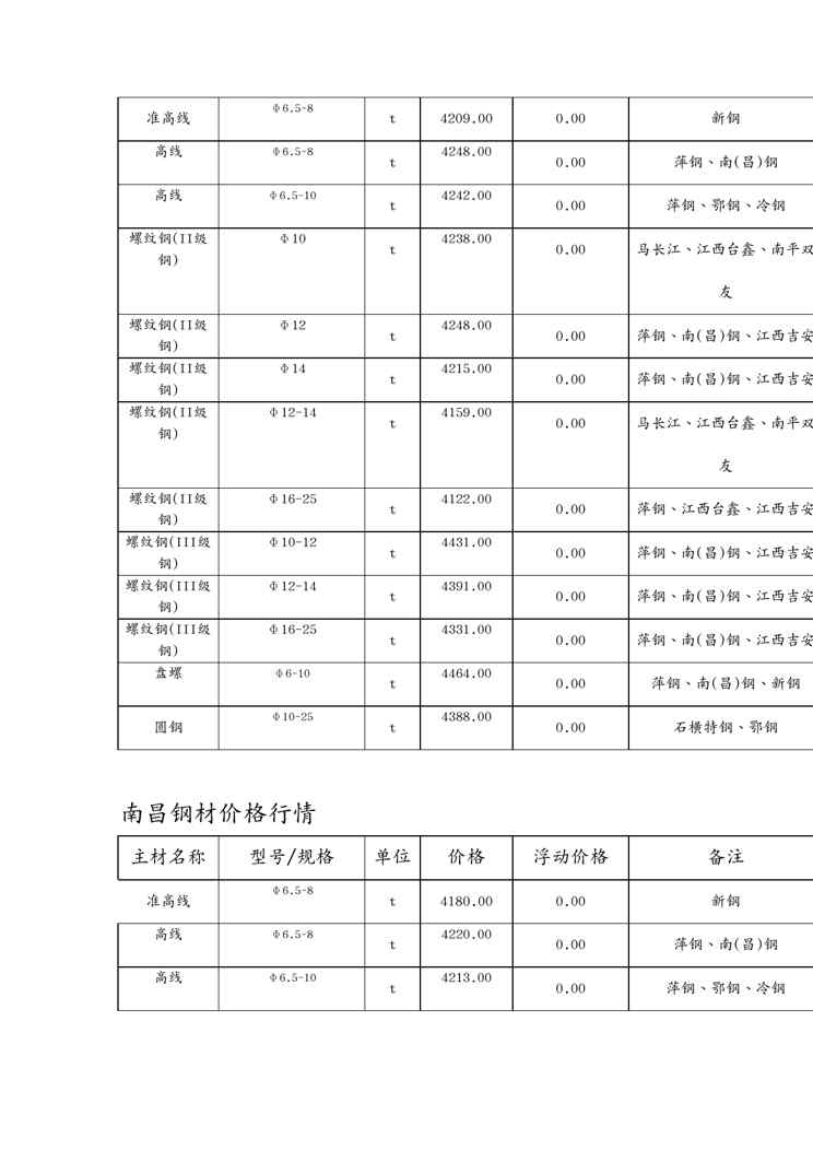 本站资深用户发布了最新的《(建筑材料)建筑材料钢材价格行情》文档,以下内容为预览,详细内容可下载阅读。 声明:本站所有文章,如无特殊说明或标注,均为本站原创发布。任何个人或组织,在未征得本站同意时,禁止复制、盗用、采集、发布本站内容到任何网站、书籍等各类媒体平台。如若本站内容侵犯了原著者的合法权益,可联系我们进行处理。