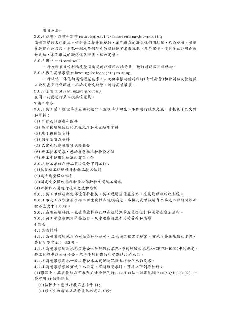 不久前,最新文档《(技术规范标准)水工建筑物防渗工程高压喷射灌浆技术规范》全文正式在本站发布,感兴趣的用户可以下载阅读。 声明:本站所有文章,如无特殊说明或标注,均为本站原创发布。任何个人或组织,在未征得本站同意时,禁止复制、盗用、采集、发布本站内容到任何网站、书籍等各类媒体平台。如若本站内容侵犯了原著者的合法权益,可联系我们进行处理。