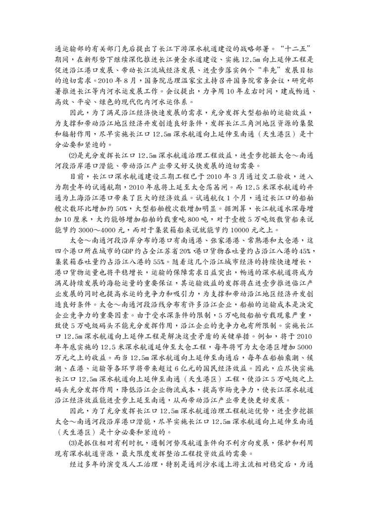 本站资深用户发布了最新的《(建筑工程管理)长江下游太仓南通深水航道初通工程》文档,以下内容为预览,详细内容可下载阅读。 声明:本站所有文章,如无特殊说明或标注,均为本站原创发布。任何个人或组织,在未征得本站同意时,禁止复制、盗用、采集、发布本站内容到任何网站、书籍等各类媒体平台。如若本站内容侵犯了原著者的合法权益,可联系我们进行处理。
