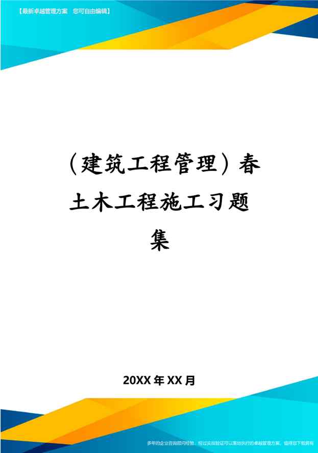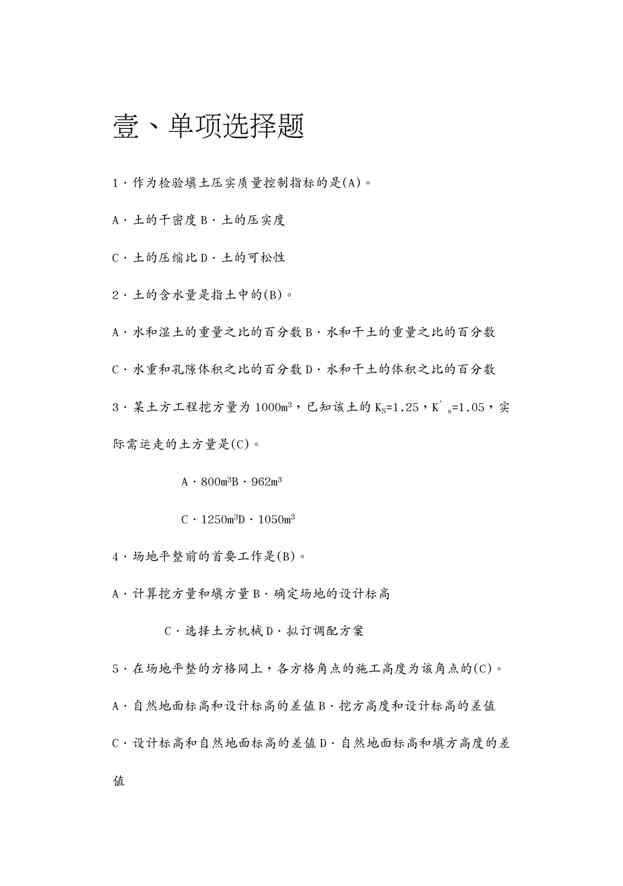 本站资深用户发布了最新的《(建筑工程管理)春土木工程施工习题集》文档,以下内容为预览,详细内容可下载阅读。 声明:本站所有文章,如无特殊说明或标注,均为本站原创发布。任何个人或组织,在未征得本站同意时,禁止复制、盗用、采集、发布本站内容到任何网站、书籍等各类媒体平台。如若本站内容侵犯了原著者的合法权益,可联系我们进行处理。