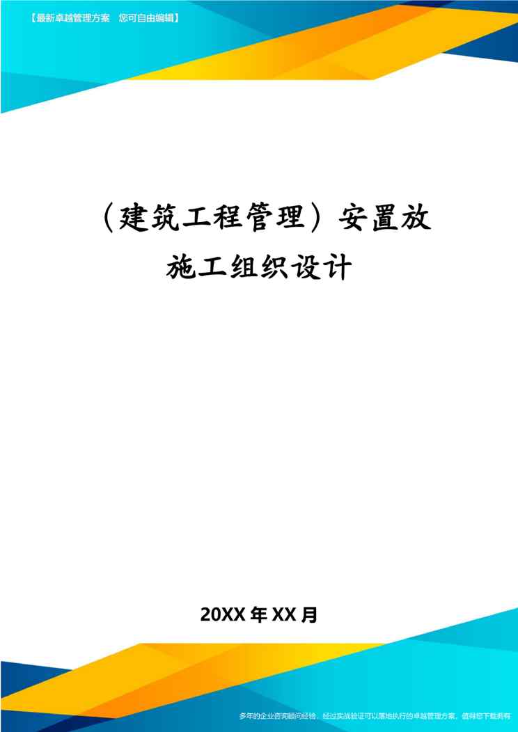 本站资深用户发布了最新的《(建筑工程管理)安置放施工组织设计》文档,以下内容为预览,详细内容可下载阅读。 声明:本站所有文章,如无特殊说明或标注,均为本站原创发布。任何个人或组织,在未征得本站同意时,禁止复制、盗用、采集、发布本站内容到任何网站、书籍等各类媒体平台。如若本站内容侵犯了原著者的合法权益,可联系我们进行处理。
