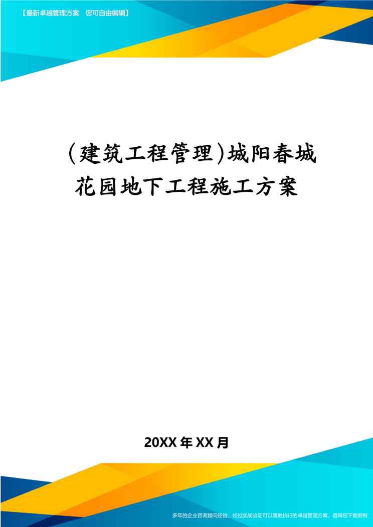 本站正式发布了《(建筑工程管理)城阳春城花园地下工程施工方案》文档,文档详细内容可下载阅读。 声明:本站所有文章,如无特殊说明或标注,均为本站原创发布。任何个人或组织,在未征得本站同意时,禁止复制、盗用、采集、发布本站内容到任何网站、书籍等各类媒体平台。如若本站内容侵犯了原著者的合法权益,可联系我们进行处理。