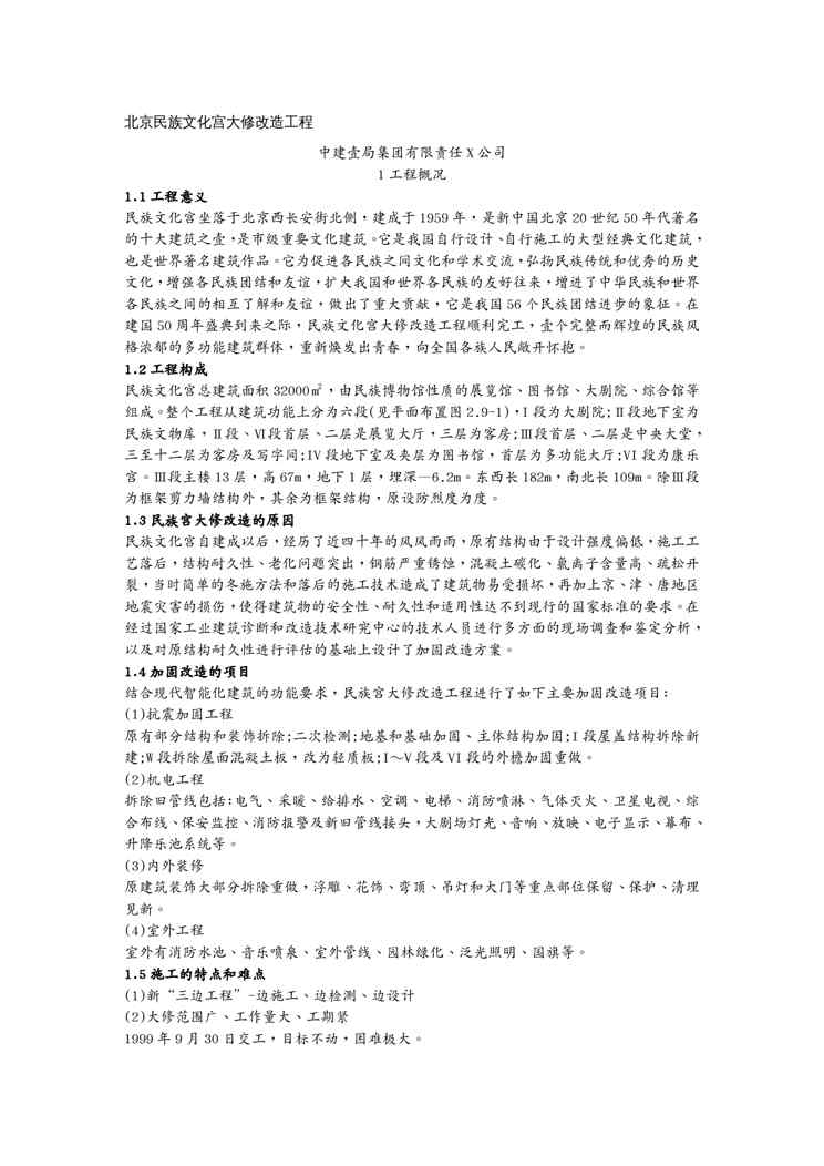 不久前,最新文档《(建筑工程管理)北京民族文化宫大修改造工程》全文正式在本站发布,感兴趣的用户可以下载阅读。 声明:本站所有文章,如无特殊说明或标注,均为本站原创发布。任何个人或组织,在未征得本站同意时,禁止复制、盗用、采集、发布本站内容到任何网站、书籍等各类媒体平台。如若本站内容侵犯了原著者的合法权益,可联系我们进行处理。