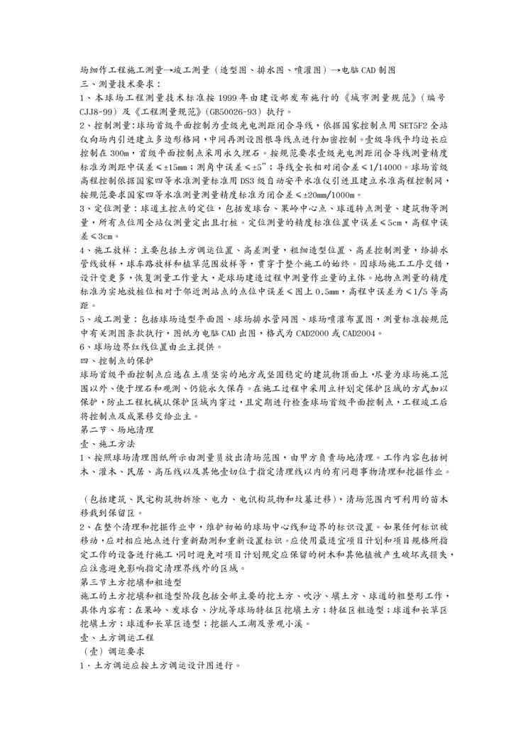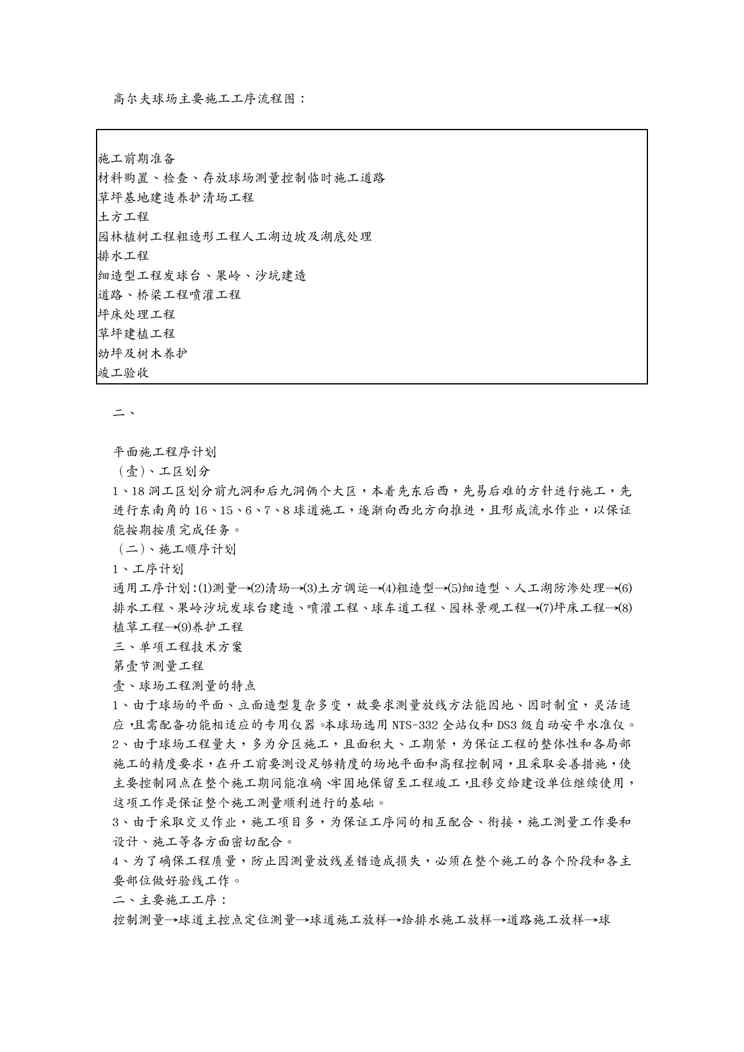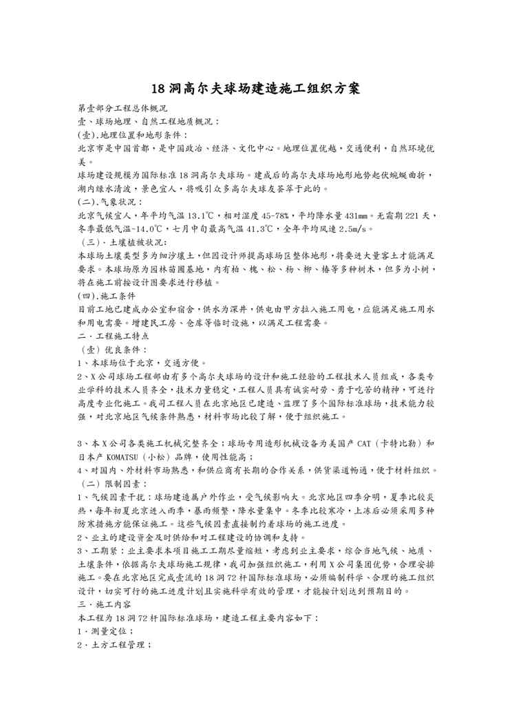 本站资深用户发布了最新的《(建筑工程管理)北京市洞高尔夫球场建造施工组织方案》文档,以下内容为预览,详细内容可下载阅读。 声明:本站所有文章,如无特殊说明或标注,均为本站原创发布。任何个人或组织,在未征得本站同意时,禁止复制、盗用、采集、发布本站内容到任何网站、书籍等各类媒体平台。如若本站内容侵犯了原著者的合法权益,可联系我们进行处理。