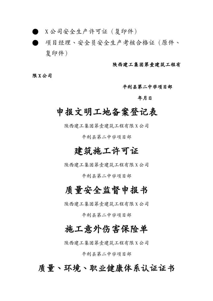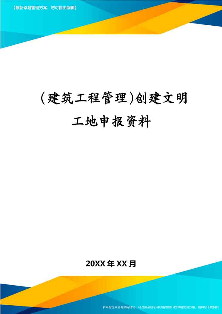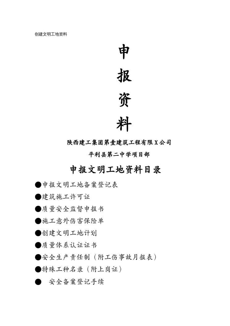 本站正式发布了《(建筑工程管理)创建文明工地申报资料》文档,文档详细内容可下载阅读。 声明:本站所有文章,如无特殊说明或标注,均为本站原创发布。任何个人或组织,在未征得本站同意时,禁止复制、盗用、采集、发布本站内容到任何网站、书籍等各类媒体平台。如若本站内容侵犯了原著者的合法权益,可联系我们进行处理。