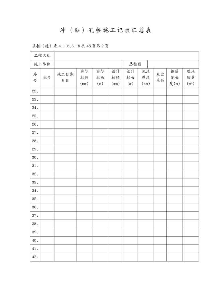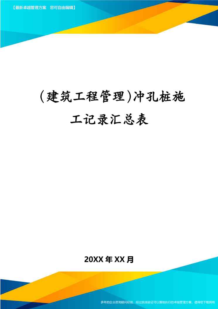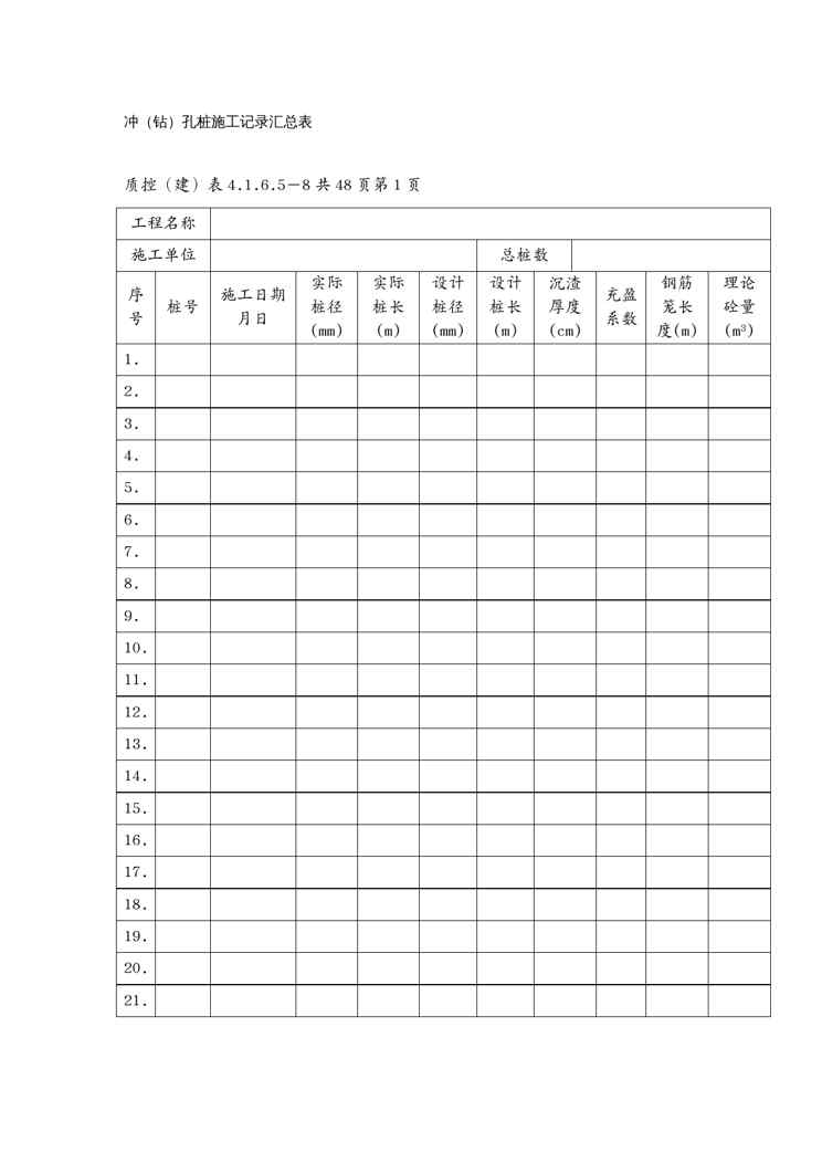 本站资深用户发布了最新的《(建筑工程管理)冲孔桩施工记录汇总表》文档,以下内容为预览,详细内容可下载阅读。 声明:本站所有文章,如无特殊说明或标注,均为本站原创发布。任何个人或组织,在未征得本站同意时,禁止复制、盗用、采集、发布本站内容到任何网站、书籍等各类媒体平台。如若本站内容侵犯了原著者的合法权益,可联系我们进行处理。