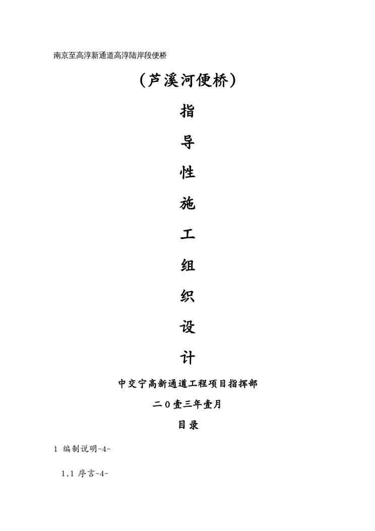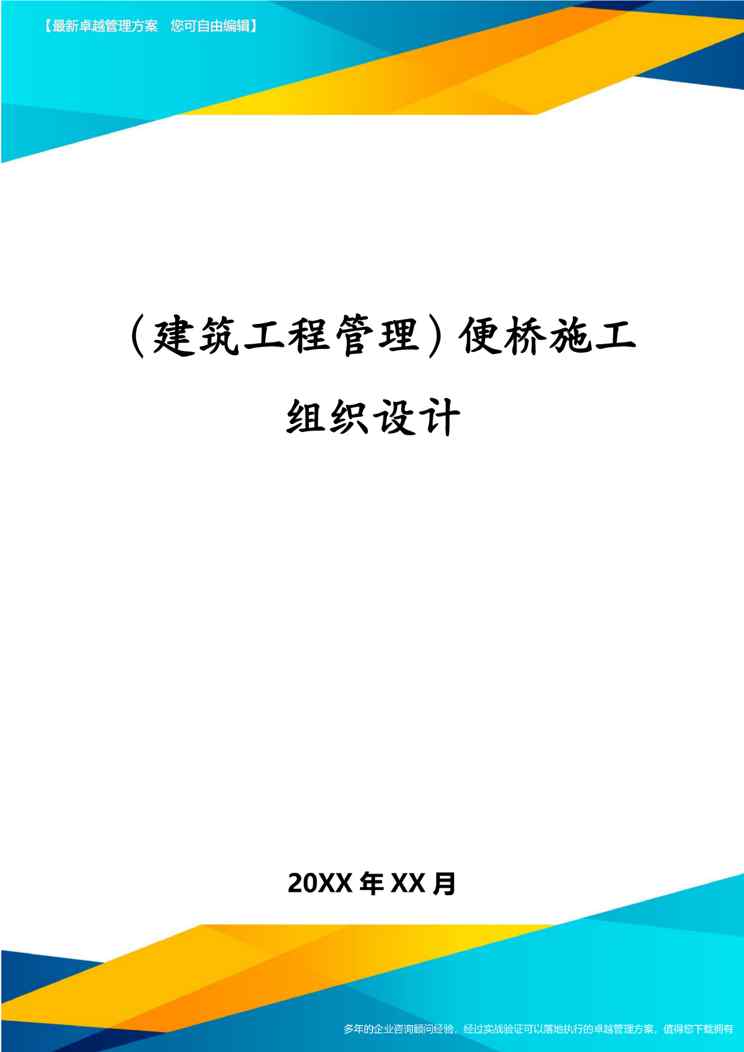 本站资深用户发布了最新的《(建筑工程管理)便桥施工组织设计》文档,以下内容为预览,详细内容可下载阅读。 声明:本站所有文章,如无特殊说明或标注,均为本站原创发布。任何个人或组织,在未征得本站同意时,禁止复制、盗用、采集、发布本站内容到任何网站、书籍等各类媒体平台。如若本站内容侵犯了原著者的合法权益,可联系我们进行处理。