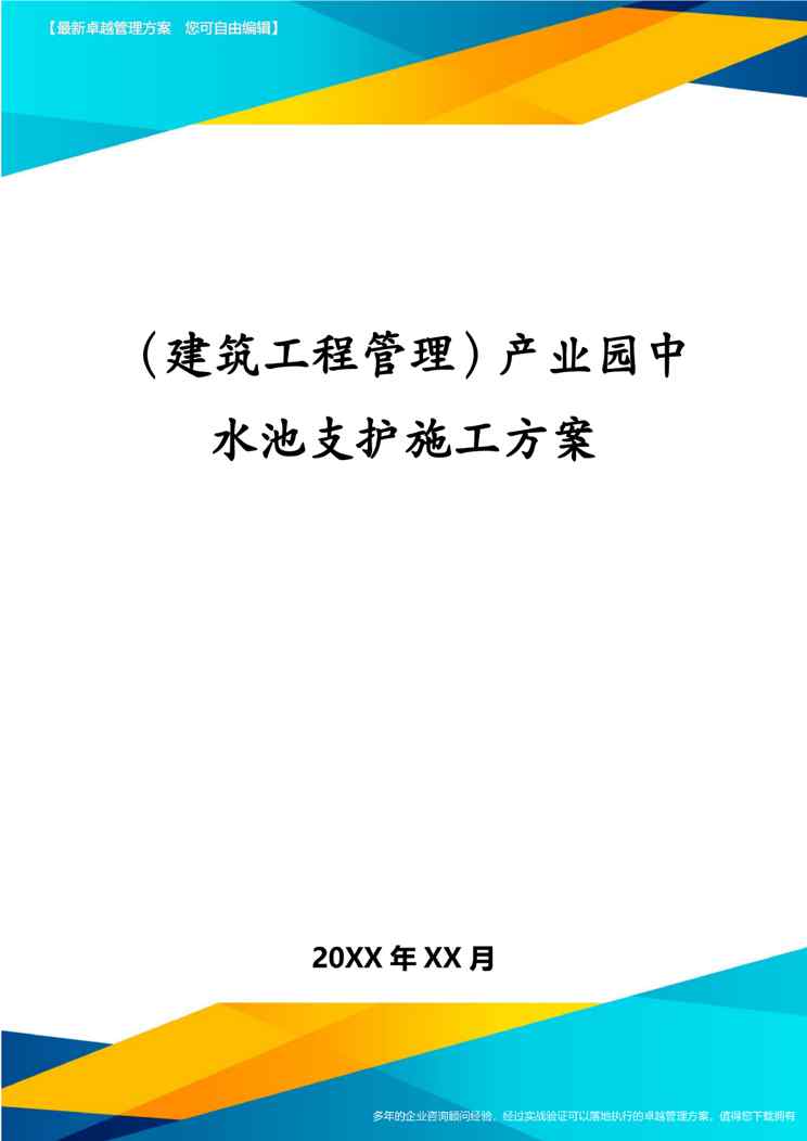 本站正式发布了《(建筑工程管理)产业园中水池支护施工方案》文档,文档详细内容可下载阅读。 声明:本站所有文章,如无特殊说明或标注,均为本站原创发布。任何个人或组织,在未征得本站同意时,禁止复制、盗用、采集、发布本站内容到任何网站、书籍等各类媒体平台。如若本站内容侵犯了原著者的合法权益,可联系我们进行处理。