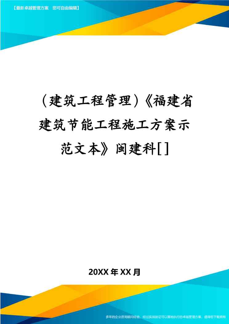 不久前,最新文档《(建筑工程管理)《福建省建筑节能工程施工方案示范文本》闽建科[]》全文正式在本站发布,感兴趣的用户可以下载阅读。 声明:本站所有文章,如无特殊说明或标注,均为本站原创发布。任何个人或组织,在未征得本站同意时,禁止复制、盗用、采集、发布本站内容到任何网站、书籍等各类媒体平台。如若本站内容侵犯了原著者的合法权益,可联系我们进行处理。