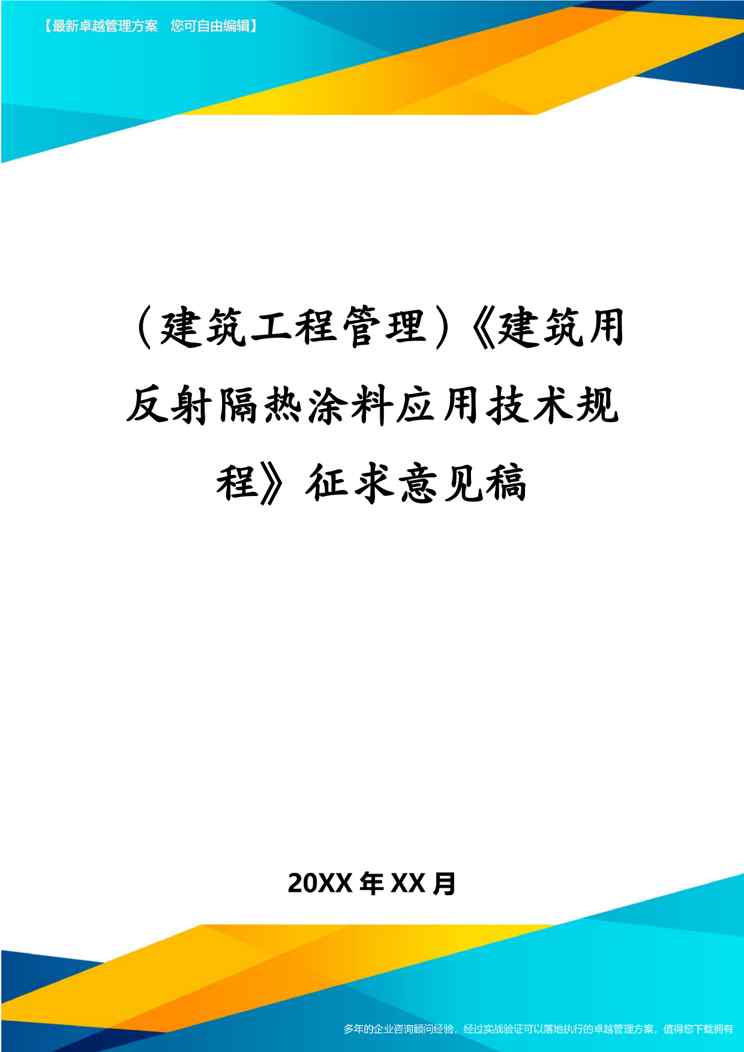 (建筑工程管理)《建筑用反射隔热涂料应用技术规程》征求意见稿(建筑工程管理)《建筑用反射隔热涂料应用技术规程》征求意见稿(建筑工程管理)《建筑用反射隔热涂料应用技术规程》征求意见稿(建筑工程管理)《建筑用反射隔热涂料应用技术规程》征求意见稿(建筑工程管理)《建筑用反射隔热涂料应用技术规程》征求意见稿