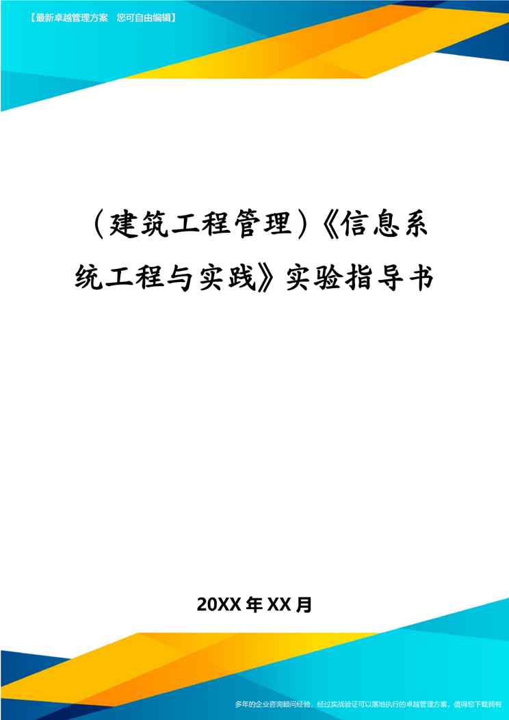 本站资深用户发布了最新的《(建筑工程管理)《信息系统工程与实践》实验指导书》文档,以下内容为预览,详细内容可下载阅读。 声明:本站所有文章,如无特殊说明或标注,均为本站原创发布。任何个人或组织,在未征得本站同意时,禁止复制、盗用、采集、发布本站内容到任何网站、书籍等各类媒体平台。如若本站内容侵犯了原著者的合法权益,可联系我们进行处理。