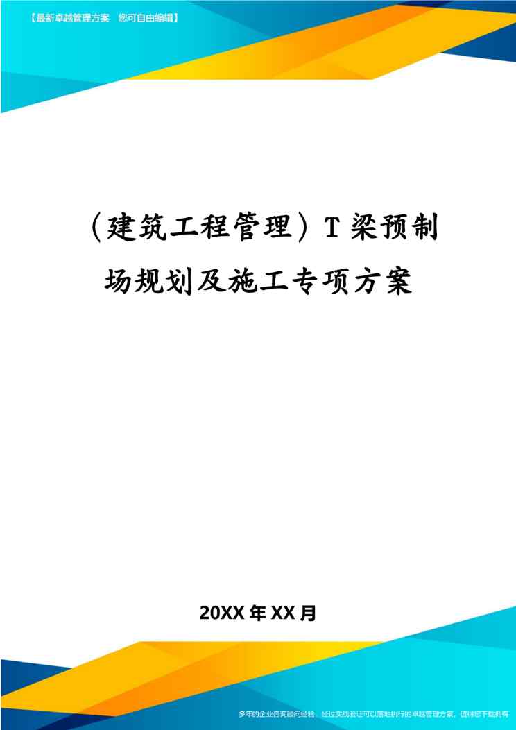 本站资深用户发布了最新的《(建筑工程管理)T梁预制场规划及施工专项方案》文档,以下内容为预览,详细内容可下载阅读。 声明:本站所有文章,如无特殊说明或标注,均为本站原创发布。任何个人或组织,在未征得本站同意时,禁止复制、盗用、采集、发布本站内容到任何网站、书籍等各类媒体平台。如若本站内容侵犯了原著者的合法权益,可联系我们进行处理。