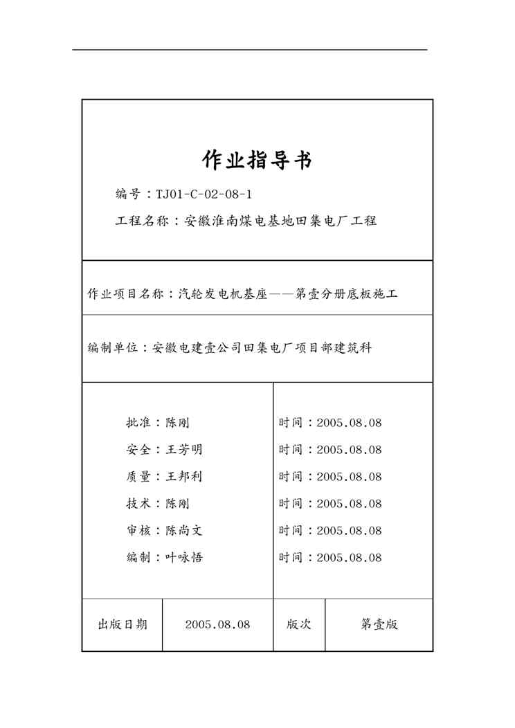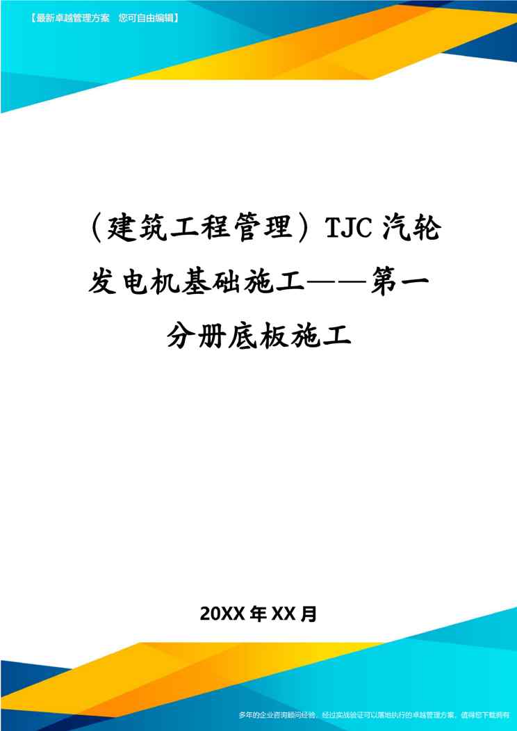 不久前,最新文档《(建筑工程管理)TJC汽轮发电机基础施工——第一分册底板施工》全文正式在本站发布,感兴趣的用户可以下载阅读。 声明:本站所有文章,如无特殊说明或标注,均为本站原创发布。任何个人或组织,在未征得本站同意时,禁止复制、盗用、采集、发布本站内容到任何网站、书籍等各类媒体平台。如若本站内容侵犯了原著者的合法权益,可联系我们进行处理。