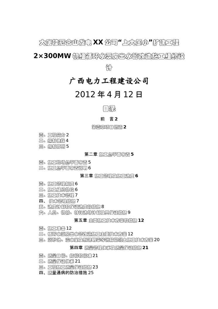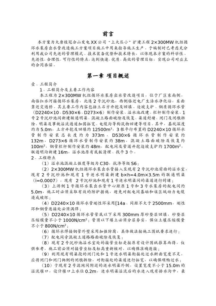 本站资深用户发布了最新的《(建筑工程管理)MW机组循环水泵房出水管改造施工方案》文档,以下内容为预览,详细内容可下载阅读。 声明:本站所有文章,如无特殊说明或标注,均为本站原创发布。任何个人或组织,在未征得本站同意时,禁止复制、盗用、采集、发布本站内容到任何网站、书籍等各类媒体平台。如若本站内容侵犯了原著者的合法权益,可联系我们进行处理。
