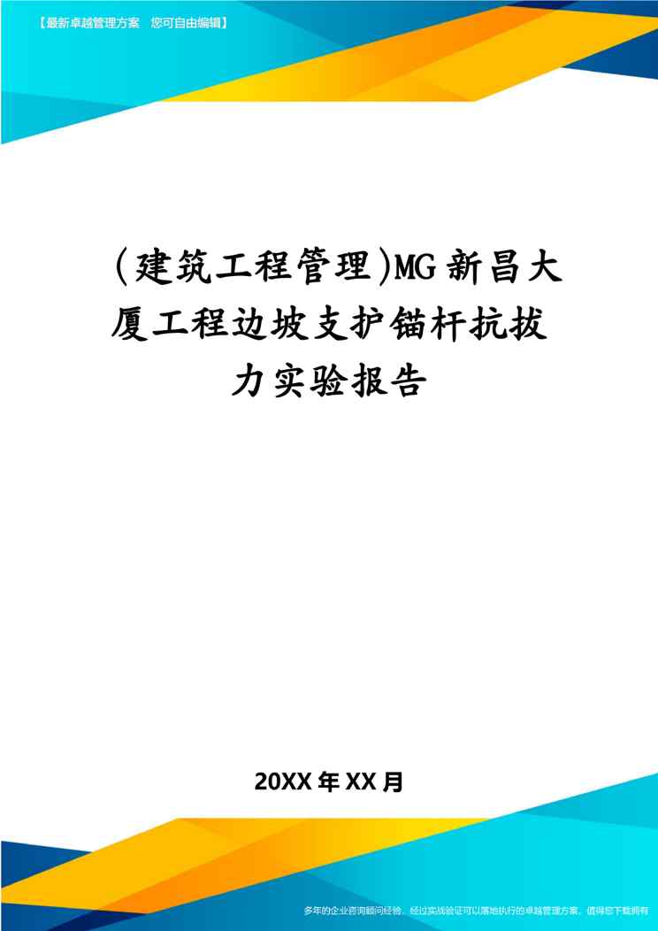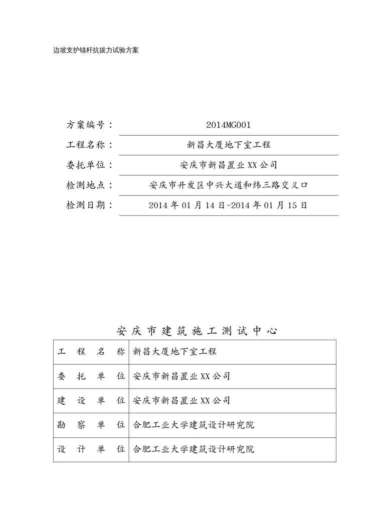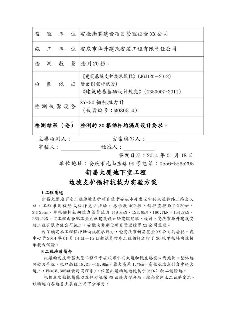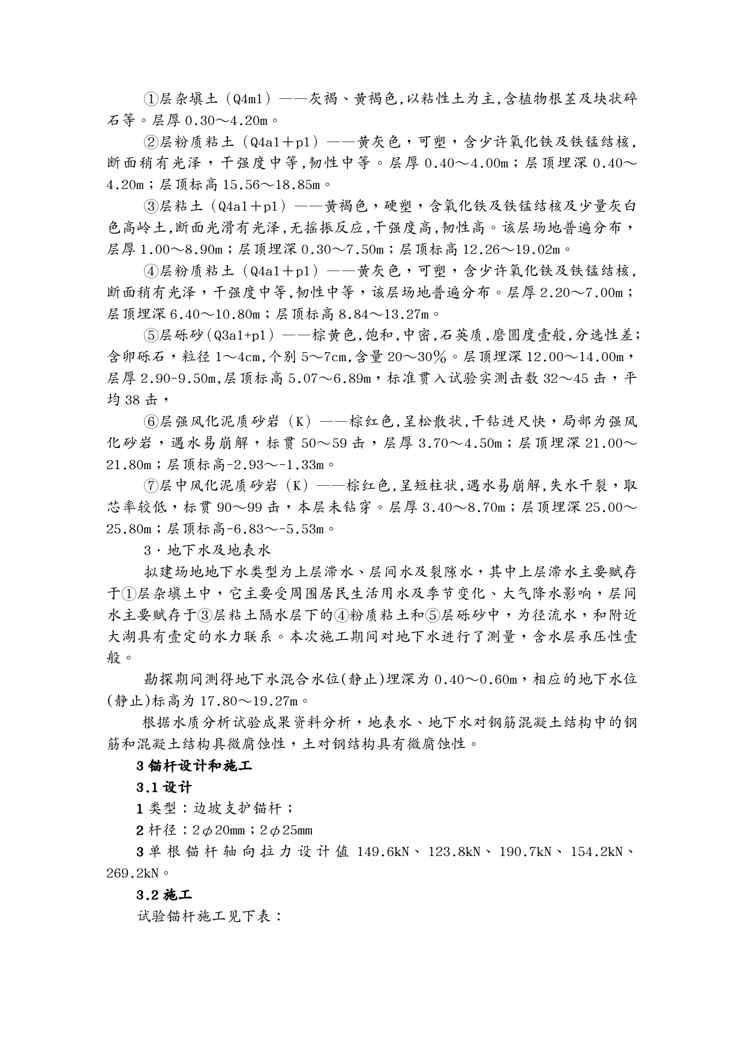 本站资深用户发布了最新的《(建筑工程管理)MG新昌大厦工程边坡支护锚杆抗拔力实验报告》文档,以下内容为预览,详细内容可下载阅读。 声明:本站所有文章,如无特殊说明或标注,均为本站原创发布。任何个人或组织,在未征得本站同意时,禁止复制、盗用、采集、发布本站内容到任何网站、书籍等各类媒体平台。如若本站内容侵犯了原著者的合法权益,可联系我们进行处理。