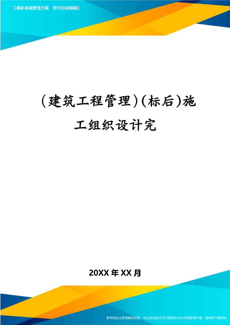 不久前,最新文档《(建筑工程管理)(标后)施工组织设计完》全文正式在本站发布,感兴趣的用户可以下载阅读。 声明:本站所有文章,如无特殊说明或标注,均为本站原创发布。任何个人或组织,在未征得本站同意时,禁止复制、盗用、采集、发布本站内容到任何网站、书籍等各类媒体平台。如若本站内容侵犯了原著者的合法权益,可联系我们进行处理。