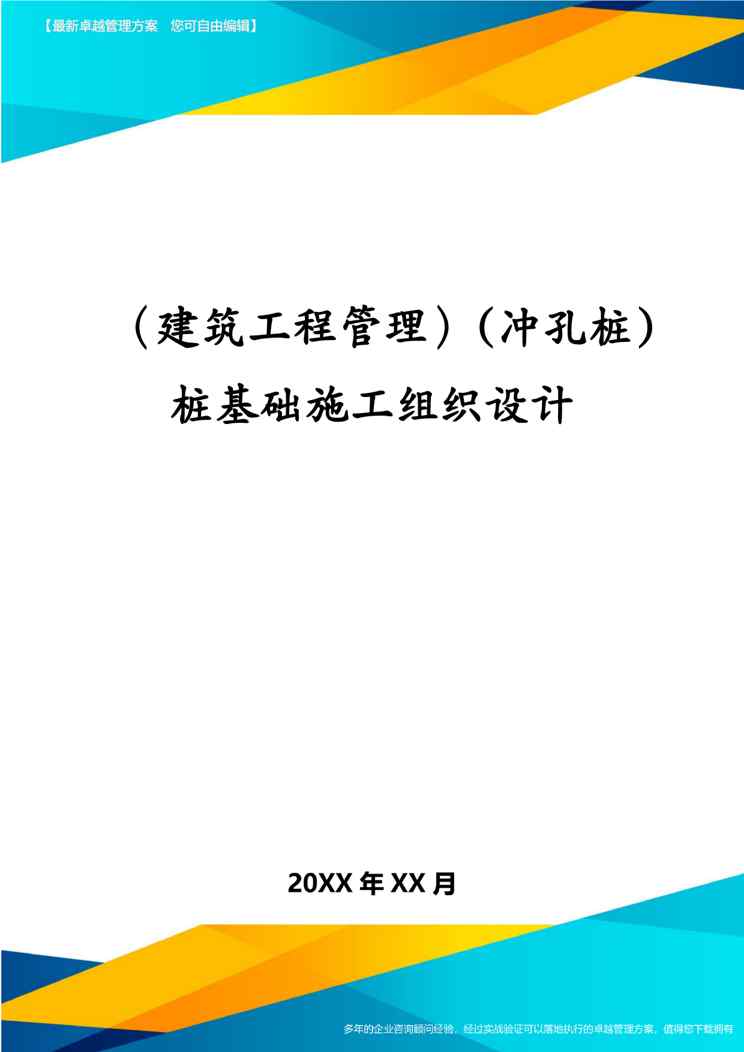 本站正式发布了《(建筑工程管理)(冲孔桩)桩基础施工组织设计》文档,文档详细内容可下载阅读。 声明:本站所有文章,如无特殊说明或标注,均为本站原创发布。任何个人或组织,在未征得本站同意时,禁止复制、盗用、采集、发布本站内容到任何网站、书籍等各类媒体平台。如若本站内容侵犯了原著者的合法权益,可联系我们进行处理。