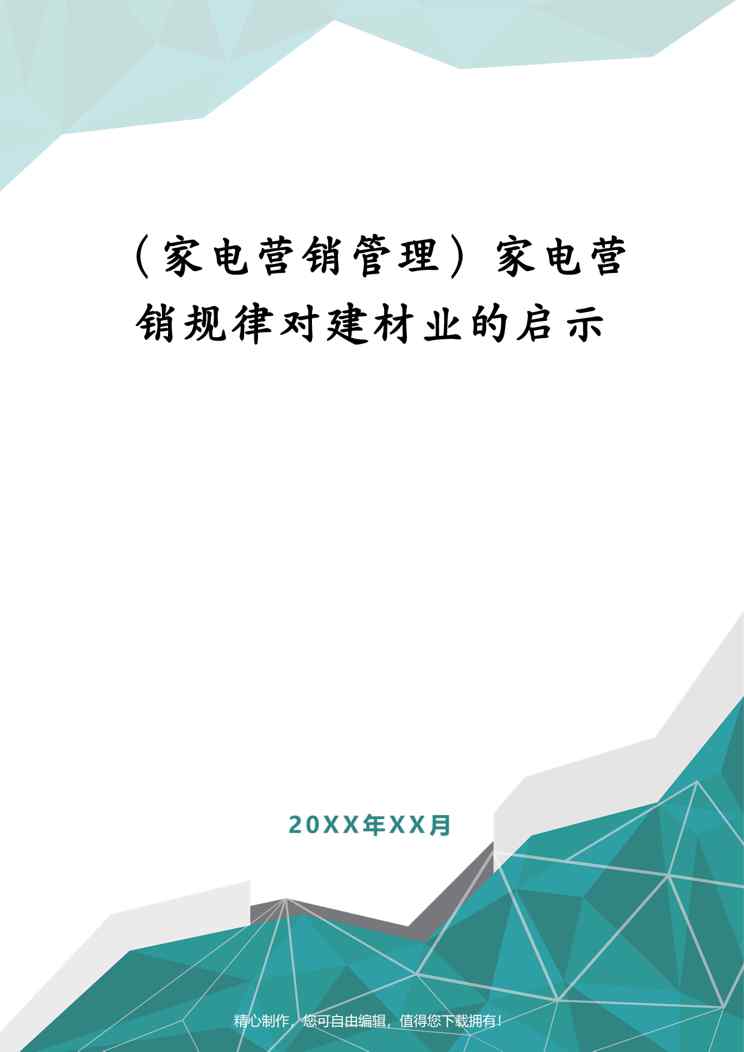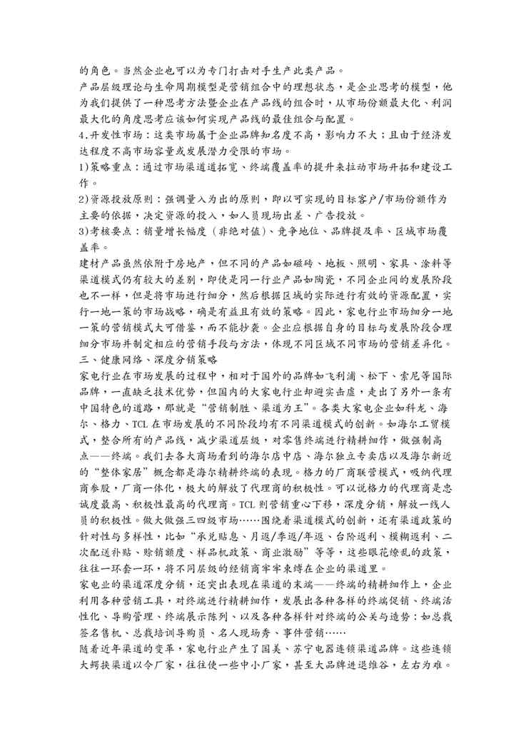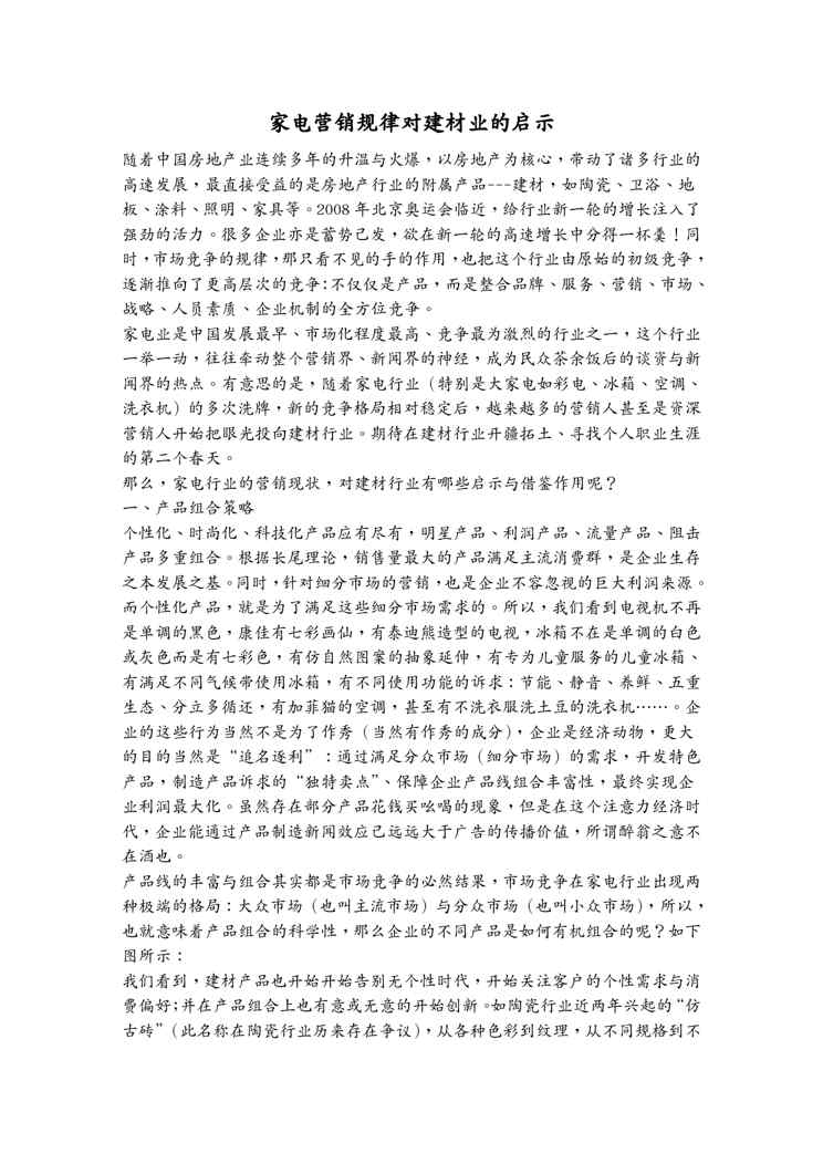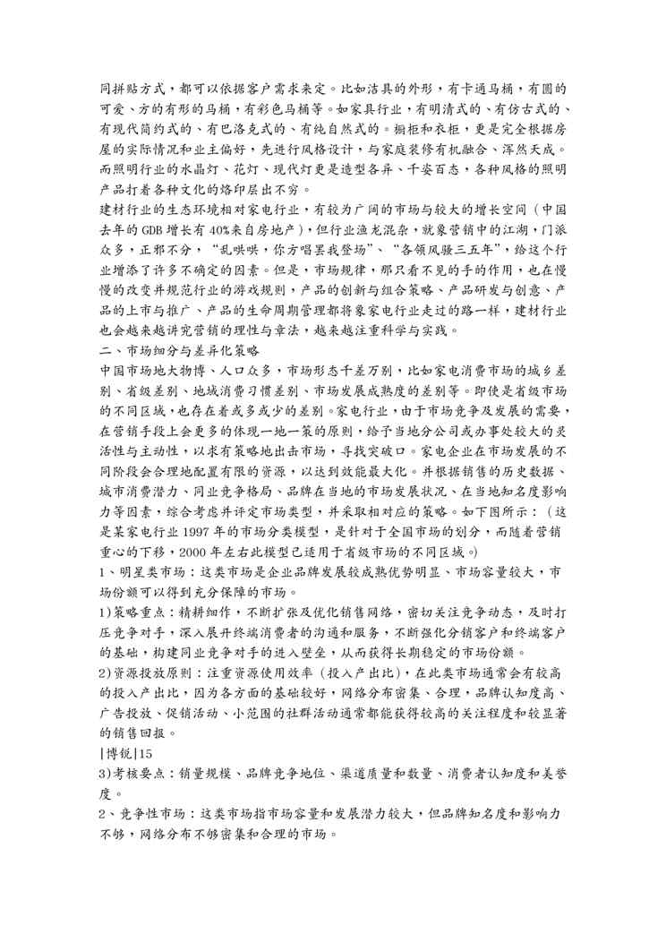 本站资深用户发布了最新的《(家电营销管理)家电营销规律对建材业的启示》文档,以下内容为预览,详细内容可下载阅读。 声明:本站所有文章,如无特殊说明或标注,均为本站原创发布。任何个人或组织,在未征得本站同意时,禁止复制、盗用、采集、发布本站内容到任何网站、书籍等各类媒体平台。如若本站内容侵犯了原著者的合法权益,可联系我们进行处理。