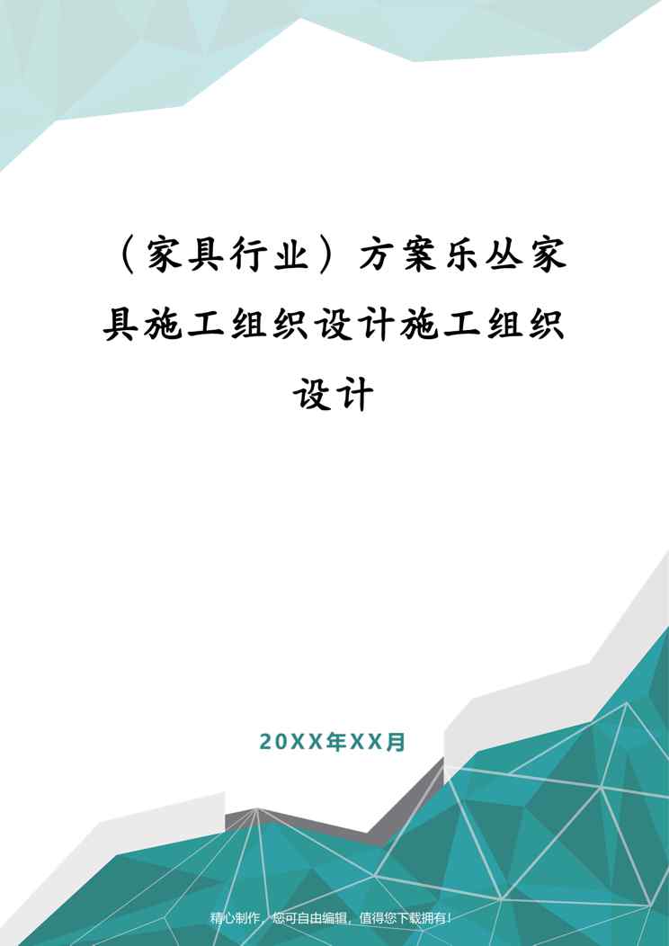 本站资深用户发布了最新的《(家具行业)方案乐丛家具施工组织设计施工组织设计》文档,以下内容为预览,详细内容可下载阅读。 声明:本站所有文章,如无特殊说明或标注,均为本站原创发布。任何个人或组织,在未征得本站同意时,禁止复制、盗用、采集、发布本站内容到任何网站、书籍等各类媒体平台。如若本站内容侵犯了原著者的合法权益,可联系我们进行处理。