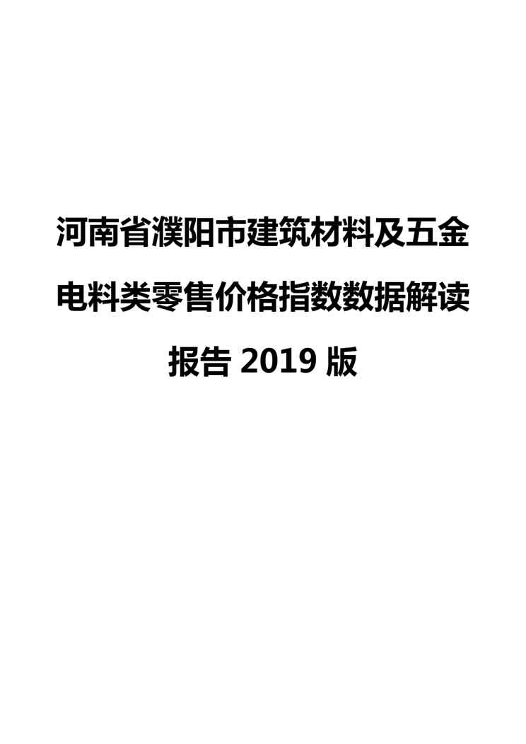 本站正式发布了《河南省濮阳市建筑材料及五金电料类零售价格指数数据解读报告2019版》文档,文档详细内容可下载阅读。 声明:本站所有文章,如无特殊说明或标注,均为本站原创发布。任何个人或组织,在未征得本站同意时,禁止复制、盗用、采集、发布本站内容到任何网站、书籍等各类媒体平台。如若本站内容侵犯了原著者的合法权益,可联系我们进行处理。