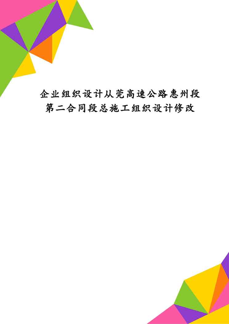本站正式发布了《企业组织设计从莞高速公路惠州段第二合同段总施工组织设计修改》文档,文档详细内容可下载阅读。 声明:本站所有文章,如无特殊说明或标注,均为本站原创发布。任何个人或组织,在未征得本站同意时,禁止复制、盗用、采集、发布本站内容到任何网站、书籍等各类媒体平台。如若本站内容侵犯了原著者的合法权益,可联系我们进行处理。