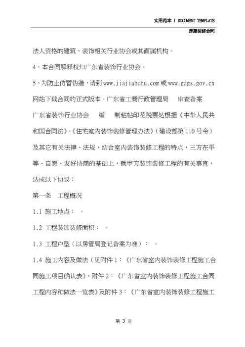广东省室内装饰装修工程施工合同通用版广东省室内装饰装修工程施工合同通用版广东省室内装饰装修工程施工合同通用版
