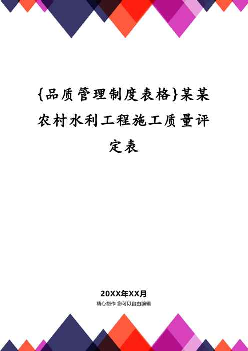 不久前,最新文档《{品质管理制度表格}某某农村水利工程施工质量评定表》全文正式在本站发布,感兴趣的用户可以下载阅读。 声明:本站所有文章,如无特殊说明或标注,均为本站原创发布。任何个人或组织,在未征得本站同意时,禁止复制、盗用、采集、发布本站内容到任何网站、书籍等各类媒体平台。如若本站内容侵犯了原著者的合法权益,可联系我们进行处理。