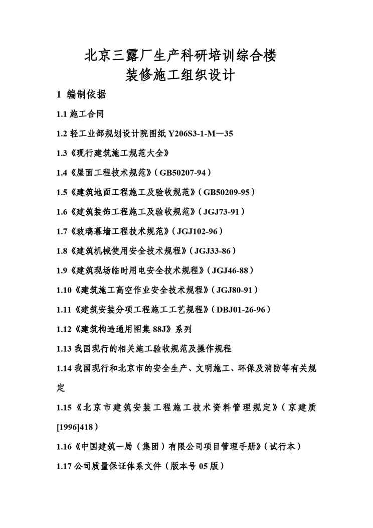 本站资深用户发布了最新的《企业组织设计三露厂装修施工组织设计方案》文档,以下内容为预览,详细内容可下载阅读。 声明:本站所有文章,如无特殊说明或标注,均为本站原创发布。任何个人或组织,在未征得本站同意时,禁止复制、盗用、采集、发布本站内容到任何网站、书籍等各类媒体平台。如若本站内容侵犯了原著者的合法权益,可联系我们进行处理。