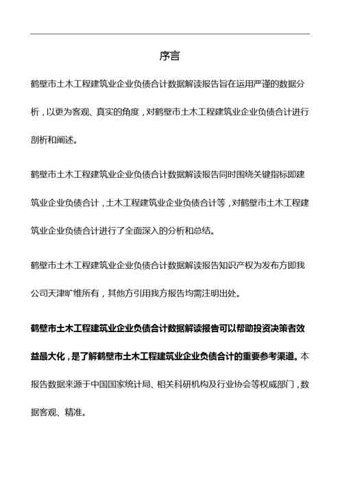 本站资深用户发布了最新的《河南省鹤壁市土木工程建筑业企业负债合计数据解读报告2019版》文档,以下内容为预览,详细内容可下载阅读。 声明:本站所有文章,如无特殊说明或标注,均为本站原创发布。任何个人或组织,在未征得本站同意时,禁止复制、盗用、采集、发布本站内容到任何网站、书籍等各类媒体平台。如若本站内容侵犯了原著者的合法权益,可联系我们进行处理。