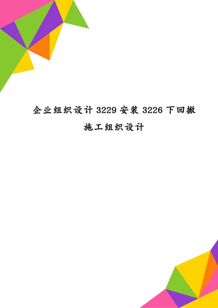本站资深用户发布了最新的《企业组织设计3229安装3226下回撤施工组织设计》文档,以下内容为预览,详细内容可下载阅读。 声明:本站所有文章,如无特殊说明或标注,均为本站原创发布。任何个人或组织,在未征得本站同意时,禁止复制、盗用、采集、发布本站内容到任何网站、书籍等各类媒体平台。如若本站内容侵犯了原著者的合法权益,可联系我们进行处理。