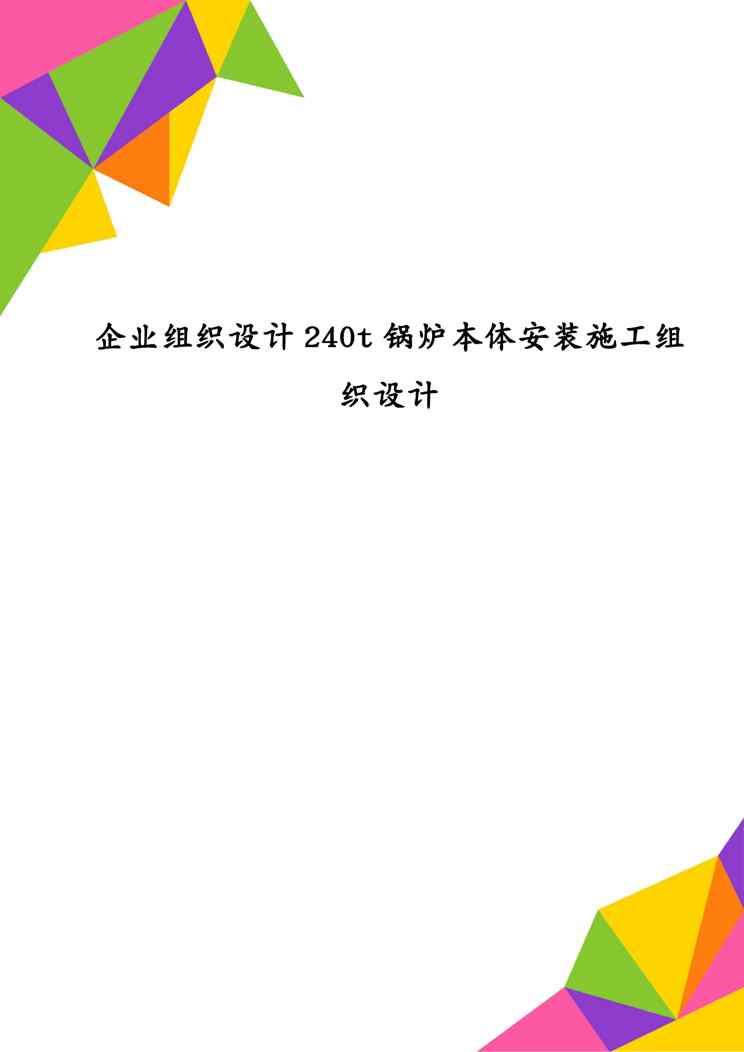 本站正式发布了《企业组织设计240t锅炉本体安装施工组织设计》文档,文档详细内容可下载阅读。 声明:本站所有文章,如无特殊说明或标注,均为本站原创发布。任何个人或组织,在未征得本站同意时,禁止复制、盗用、采集、发布本站内容到任何网站、书籍等各类媒体平台。如若本站内容侵犯了原著者的合法权益,可联系我们进行处理。