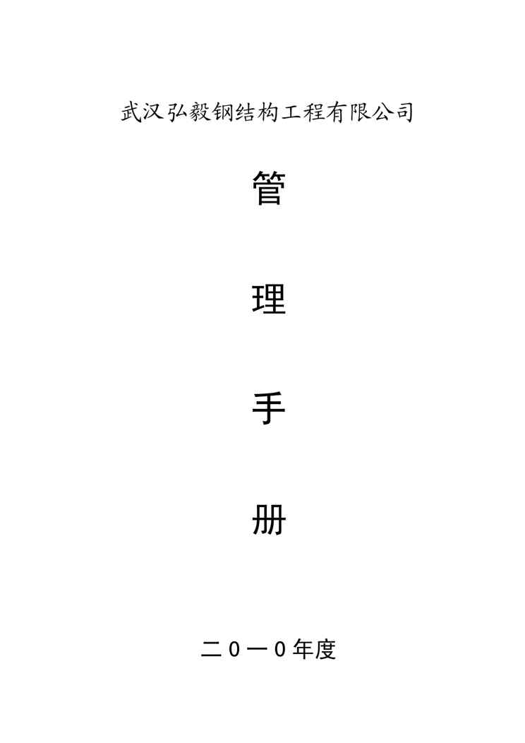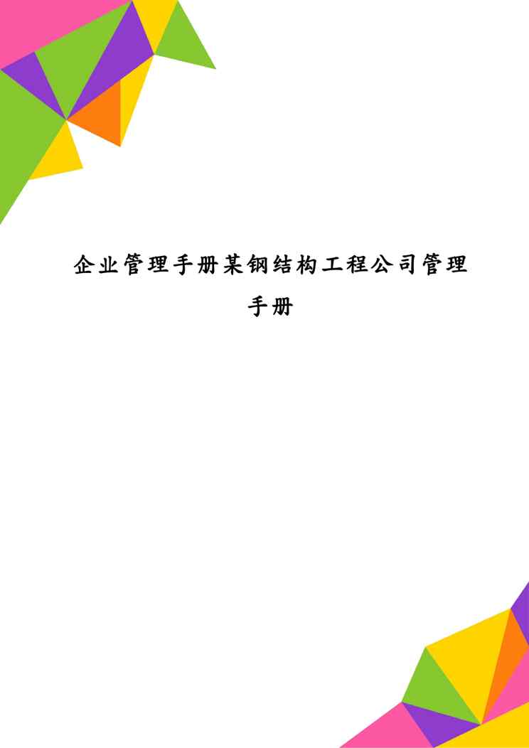不久前,最新文档《企业管理手册某钢结构工程公司管理手册》全文正式在本站发布,感兴趣的用户可以下载阅读。 声明:本站所有文章,如无特殊说明或标注,均为本站原创发布。任何个人或组织,在未征得本站同意时,禁止复制、盗用、采集、发布本站内容到任何网站、书籍等各类媒体平台。如若本站内容侵犯了原著者的合法权益,可联系我们进行处理。