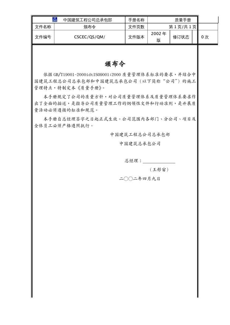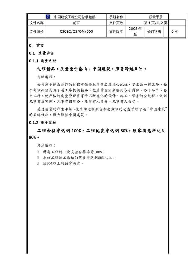 不久前,最新文档《企业管理手册某建筑工程公司质量手册》全文正式在本站发布,感兴趣的用户可以下载阅读。 声明:本站所有文章,如无特殊说明或标注,均为本站原创发布。任何个人或组织,在未征得本站同意时,禁止复制、盗用、采集、发布本站内容到任何网站、书籍等各类媒体平台。如若本站内容侵犯了原著者的合法权益,可联系我们进行处理。