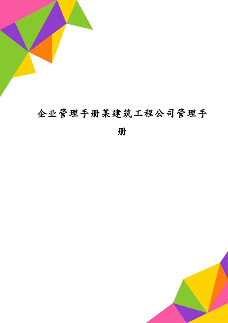 本站资深用户发布了最新的《企业管理手册某建筑工程公司管理手册》文档,以下内容为预览,详细内容可下载阅读。 声明:本站所有文章,如无特殊说明或标注,均为本站原创发布。任何个人或组织,在未征得本站同意时,禁止复制、盗用、采集、发布本站内容到任何网站、书籍等各类媒体平台。如若本站内容侵犯了原著者的合法权益,可联系我们进行处理。