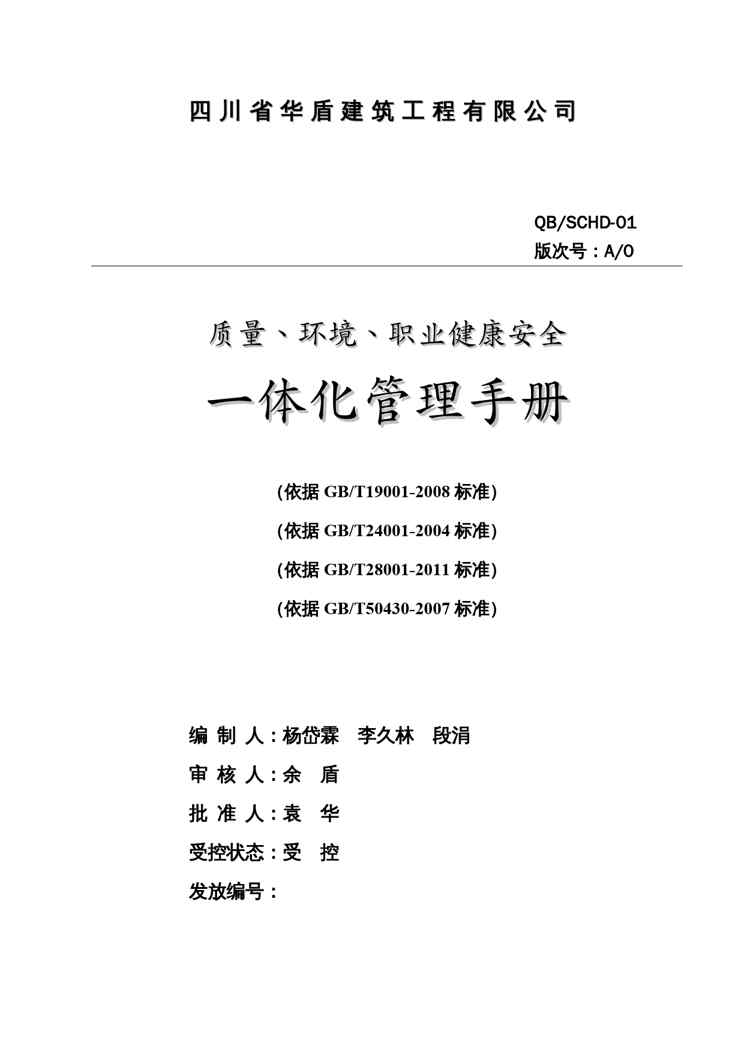 本站正式发布了《企业管理手册某建筑工程公司一体化管理体系手册》文档,文档详细内容可下载阅读。 声明:本站所有文章,如无特殊说明或标注,均为本站原创发布。任何个人或组织,在未征得本站同意时,禁止复制、盗用、采集、发布本站内容到任何网站、书籍等各类媒体平台。如若本站内容侵犯了原著者的合法权益,可联系我们进行处理。