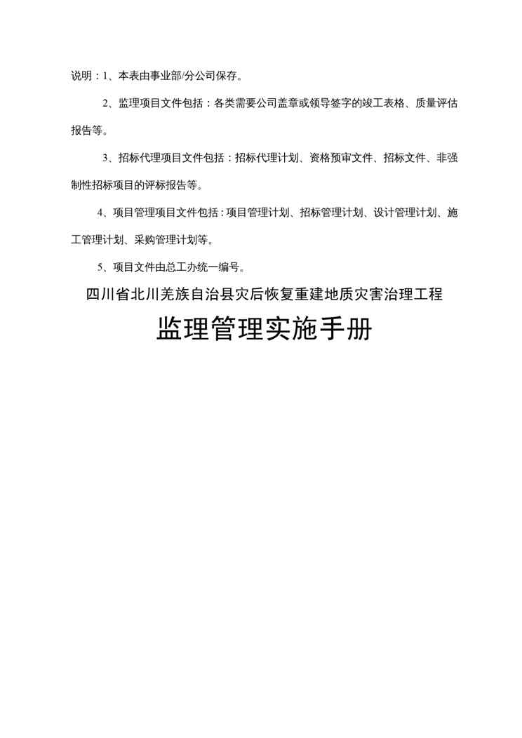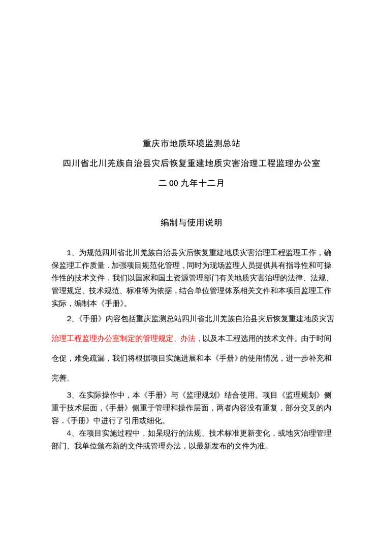 不久前,最新文档《企业管理手册地质灾害治理工程监理管理实施手册》全文正式在本站发布,感兴趣的用户可以下载阅读。 声明:本站所有文章,如无特殊说明或标注,均为本站原创发布。任何个人或组织,在未征得本站同意时,禁止复制、盗用、采集、发布本站内容到任何网站、书籍等各类媒体平台。如若本站内容侵犯了原著者的合法权益,可联系我们进行处理。