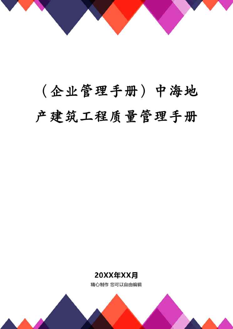 本站正式发布了《企业管理手册中海地产建筑工程质量管理手册》文档,文档详细内容可下载阅读。 声明:本站所有文章,如无特殊说明或标注,均为本站原创发布。任何个人或组织,在未征得本站同意时,禁止复制、盗用、采集、发布本站内容到任何网站、书籍等各类媒体平台。如若本站内容侵犯了原著者的合法权益,可联系我们进行处理。