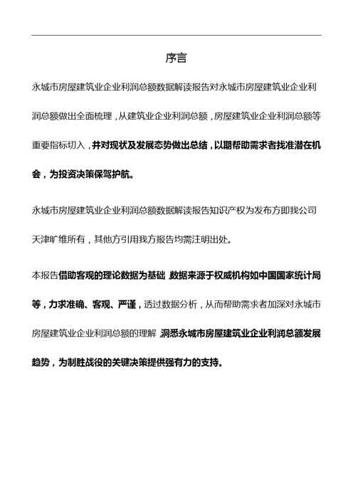 本站资深用户发布了最新的《河南省永城市房屋建筑业企业利润总额数据解读报告2019版》文档,以下内容为预览,详细内容可下载阅读。 声明:本站所有文章,如无特殊说明或标注,均为本站原创发布。任何个人或组织,在未征得本站同意时,禁止复制、盗用、采集、发布本站内容到任何网站、书籍等各类媒体平台。如若本站内容侵犯了原著者的合法权益,可联系我们进行处理。