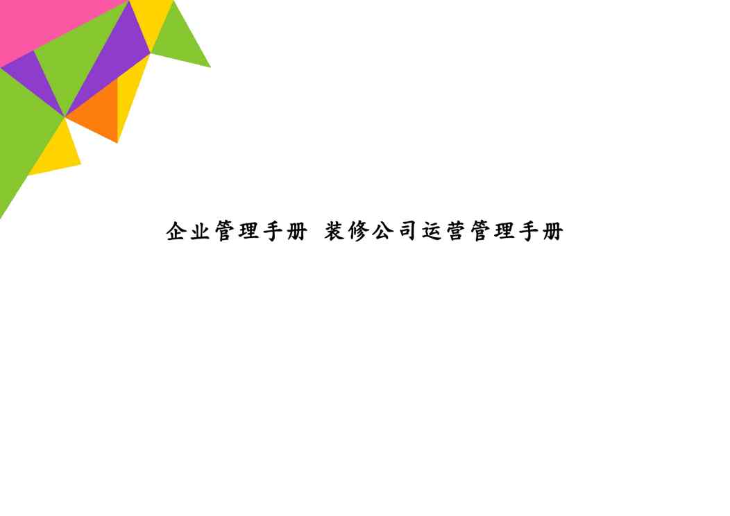 本站正式发布了《企业管理手册 装修公司运营管理手册》文档,文档详细内容可下载阅读。 声明:本站所有文章,如无特殊说明或标注,均为本站原创发布。任何个人或组织,在未征得本站同意时,禁止复制、盗用、采集、发布本站内容到任何网站、书籍等各类媒体平台。如若本站内容侵犯了原著者的合法权益,可联系我们进行处理。