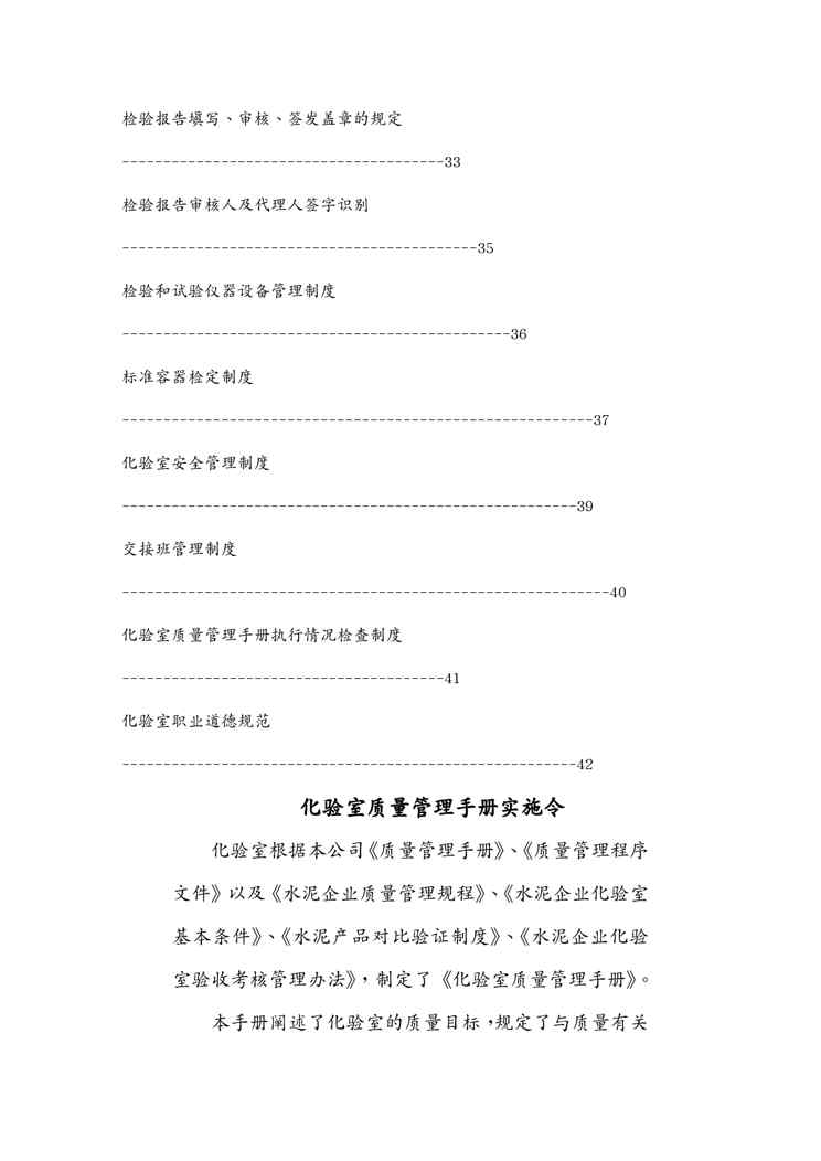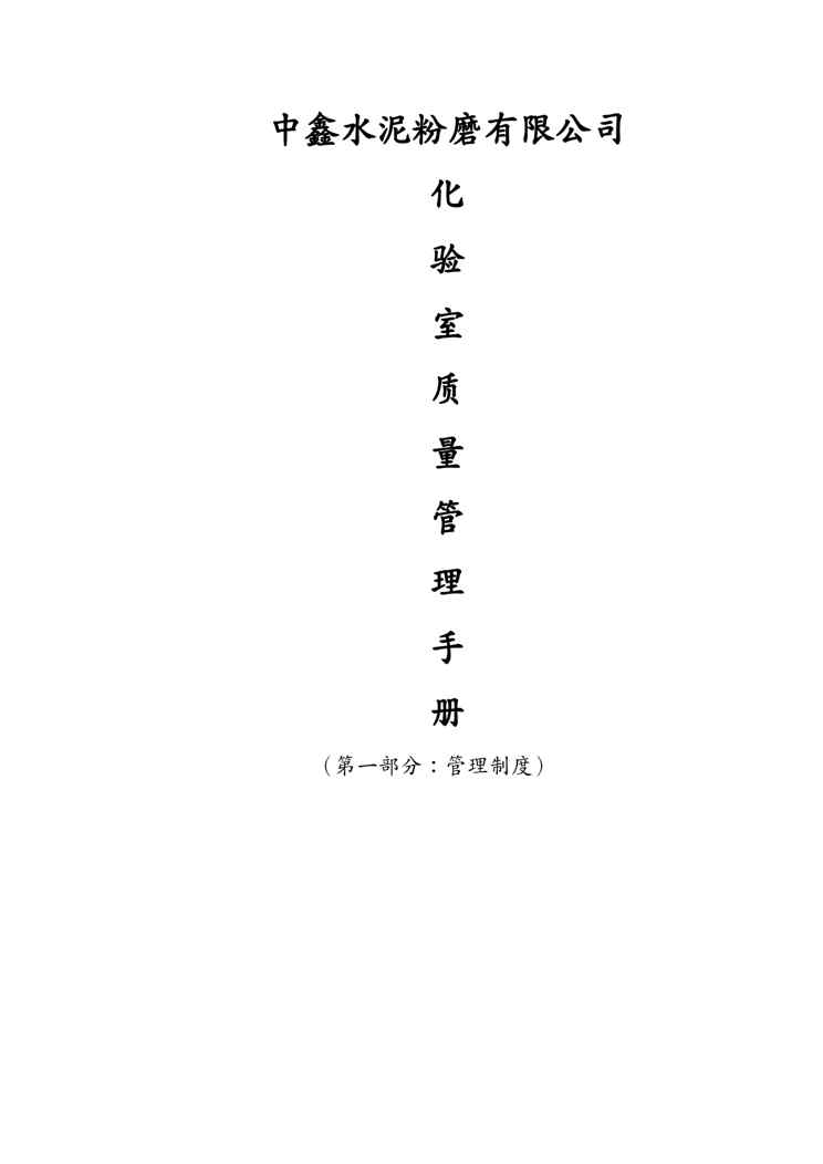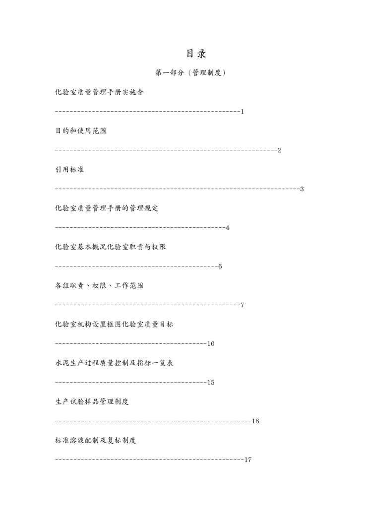 本站资深用户发布了最新的《企业管理手册 徐州中鑫水泥厂化验室质量管理手册》文档,以下内容为预览,详细内容可下载阅读。 声明:本站所有文章,如无特殊说明或标注,均为本站原创发布。任何个人或组织,在未征得本站同意时,禁止复制、盗用、采集、发布本站内容到任何网站、书籍等各类媒体平台。如若本站内容侵犯了原著者的合法权益,可联系我们进行处理。
