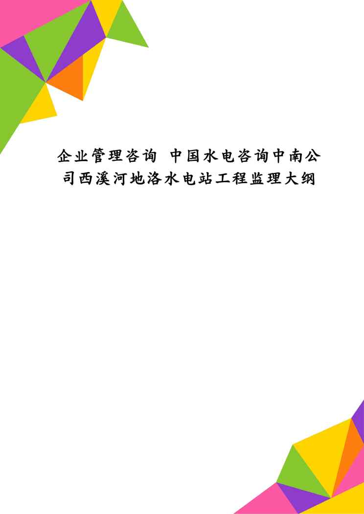 不久前,最新文档《企业管理咨询 中国水电咨询中南公司西溪河地洛水电站工程监理大纲》全文正式在本站发布,感兴趣的用户可以下载阅读。 声明:本站所有文章,如无特殊说明或标注,均为本站原创发布。任何个人或组织,在未征得本站同意时,禁止复制、盗用、采集、发布本站内容到任何网站、书籍等各类媒体平台。如若本站内容侵犯了原著者的合法权益,可联系我们进行处理。