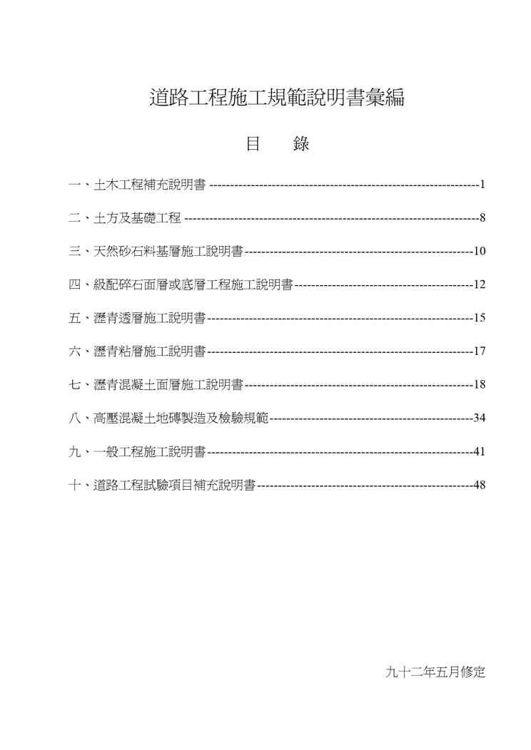本站资深用户发布了最新的《企业管理制度道路工程施工说明书汇编》文档,以下内容为预览,详细内容可下载阅读。 声明:本站所有文章,如无特殊说明或标注,均为本站原创发布。任何个人或组织,在未征得本站同意时,禁止复制、盗用、采集、发布本站内容到任何网站、书籍等各类媒体平台。如若本站内容侵犯了原著者的合法权益,可联系我们进行处理。