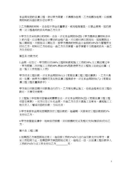 本站资深用户发布了最新的《家庭装修工程承包合同范本》文档,以下内容为预览,详细内容可下载阅读。 声明:本站所有文章,如无特殊说明或标注,均为本站原创发布。任何个人或组织,在未征得本站同意时,禁止复制、盗用、采集、发布本站内容到任何网站、书籍等各类媒体平台。如若本站内容侵犯了原著者的合法权益,可联系我们进行处理。
