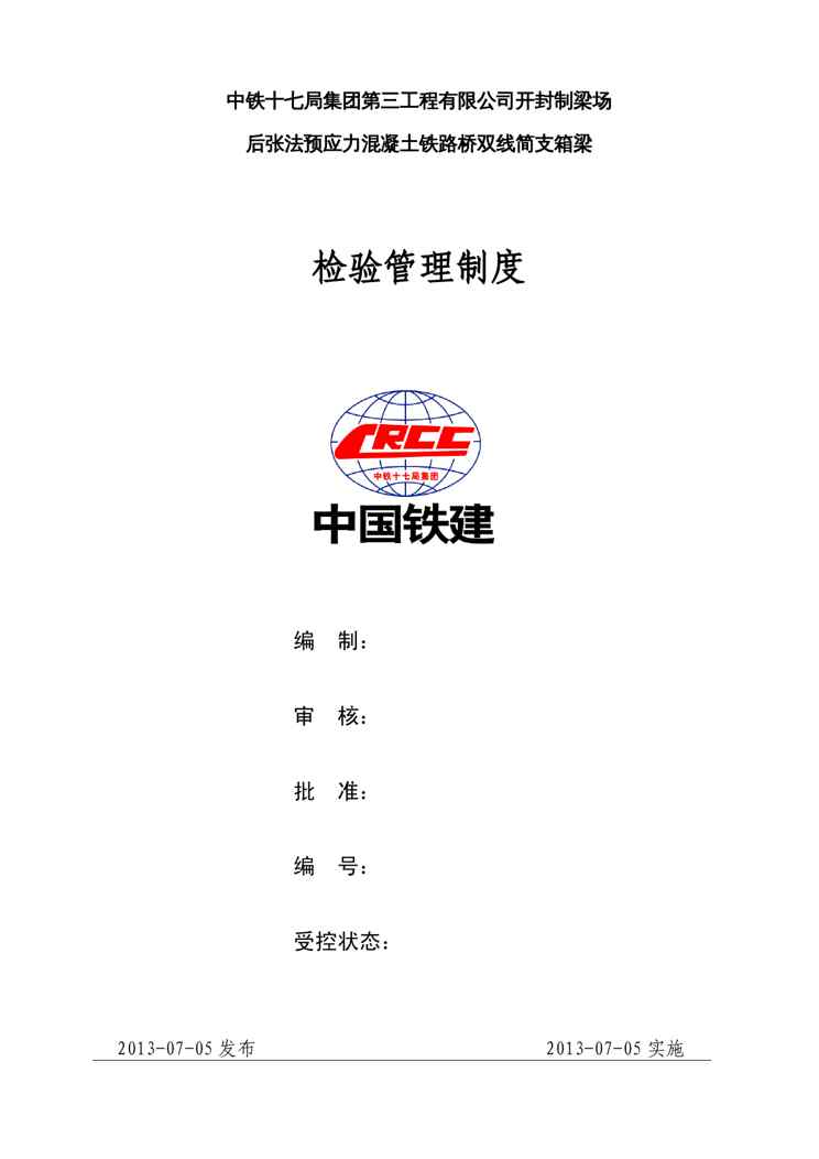 本站资深用户发布了最新的《企业管理制度混凝土铁路桥双线简支箱梁检验管理制度汇编》文档,以下内容为预览,详细内容可下载阅读。 声明:本站所有文章,如无特殊说明或标注,均为本站原创发布。任何个人或组织,在未征得本站同意时,禁止复制、盗用、采集、发布本站内容到任何网站、书籍等各类媒体平台。如若本站内容侵犯了原著者的合法权益,可联系我们进行处理。