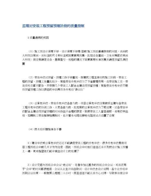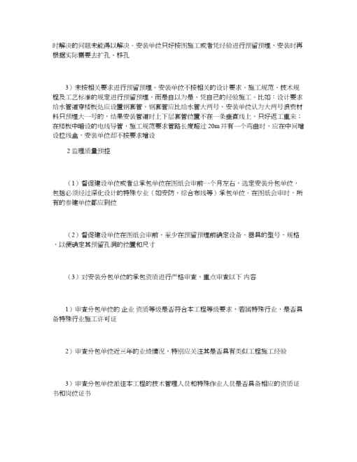 本站正式发布了《监理对安装工程预留预埋阶段的质量控制》文档,文档详细内容可下载阅读。 声明:本站所有文章,如无特殊说明或标注,均为本站原创发布。任何个人或组织,在未征得本站同意时,禁止复制、盗用、采集、发布本站内容到任何网站、书籍等各类媒体平台。如若本站内容侵犯了原著者的合法权益,可联系我们进行处理。