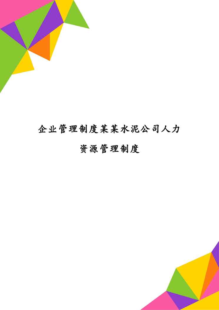 本站资深用户发布了最新的《企业管理制度某某水泥公司人力资源管理制度》文档,以下内容为预览,详细内容可下载阅读。 声明:本站所有文章,如无特殊说明或标注,均为本站原创发布。任何个人或组织,在未征得本站同意时,禁止复制、盗用、采集、发布本站内容到任何网站、书籍等各类媒体平台。如若本站内容侵犯了原著者的合法权益,可联系我们进行处理。
