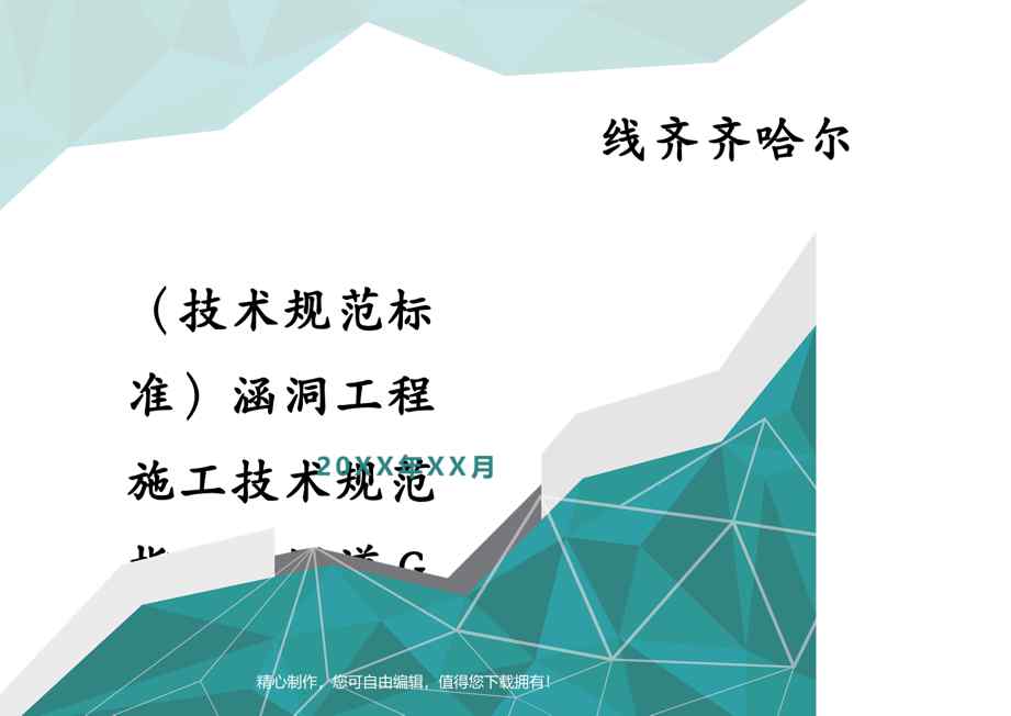 不久前,最新文档《(技术规范标准)涵洞工程施工技术规范指导书国道G线齐齐哈尔》全文正式在本站发布,感兴趣的用户可以下载阅读。 声明:本站所有文章,如无特殊说明或标注,均为本站原创发布。任何个人或组织,在未征得本站同意时,禁止复制、盗用、采集、发布本站内容到任何网站、书籍等各类媒体平台。如若本站内容侵犯了原著者的合法权益,可联系我们进行处理。