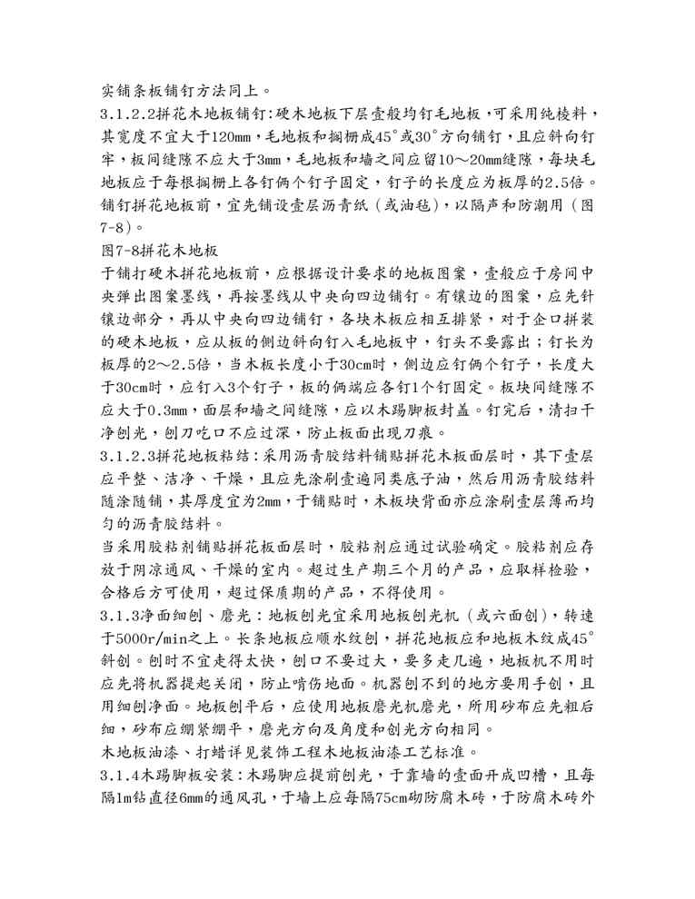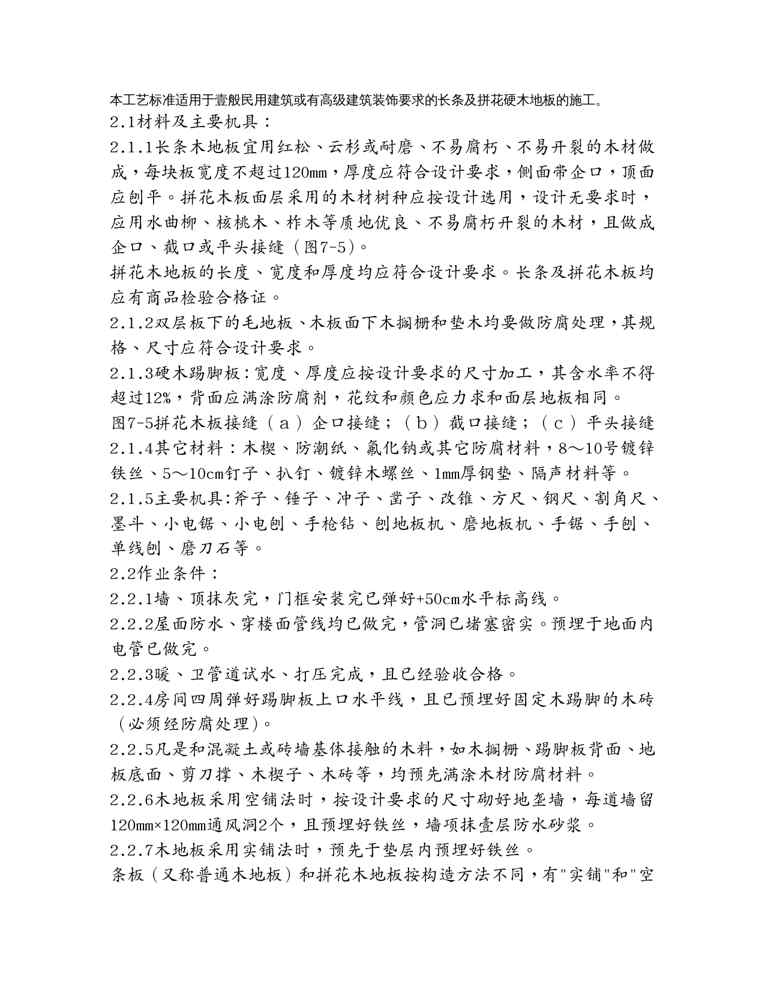 本站资深用户发布了最新的《(建筑工程管理)长条及拼花硬木地板施工工艺》文档,以下内容为预览,详细内容可下载阅读。 声明:本站所有文章,如无特殊说明或标注,均为本站原创发布。任何个人或组织,在未征得本站同意时,禁止复制、盗用、采集、发布本站内容到任何网站、书籍等各类媒体平台。如若本站内容侵犯了原著者的合法权益,可联系我们进行处理。