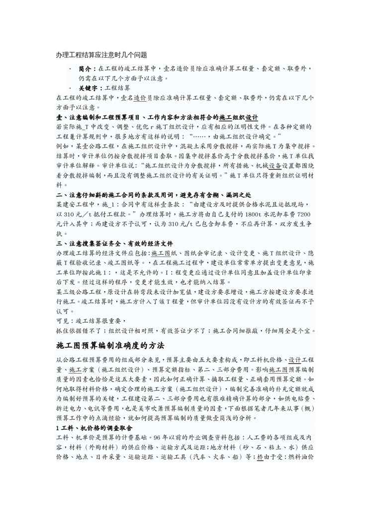 不久前,最新文档《(建筑工程管理)办理工程结算应注意时几个问题》全文正式在本站发布,感兴趣的用户可以下载阅读。 声明:本站所有文章,如无特殊说明或标注,均为本站原创发布。任何个人或组织,在未征得本站同意时,禁止复制、盗用、采集、发布本站内容到任何网站、书籍等各类媒体平台。如若本站内容侵犯了原著者的合法权益,可联系我们进行处理。